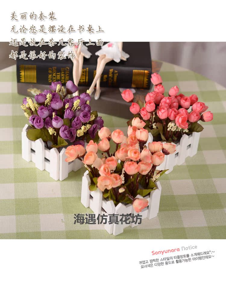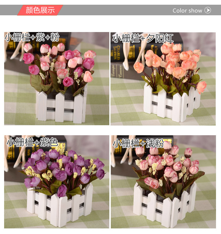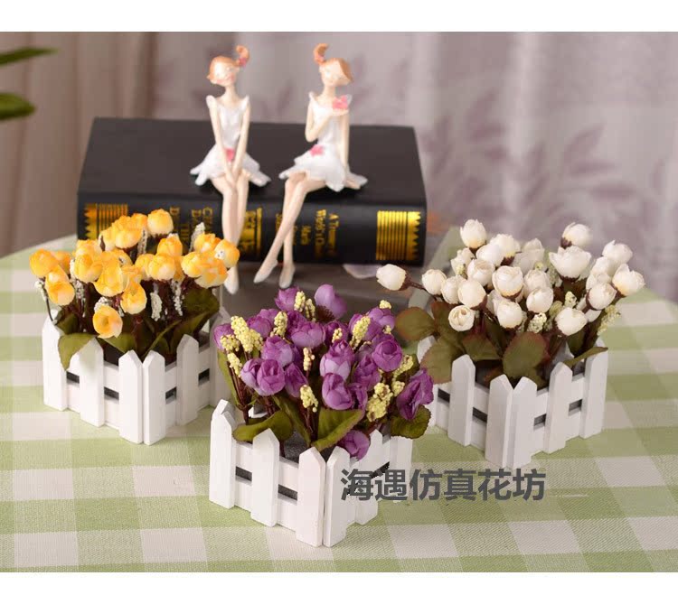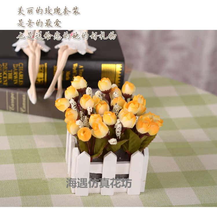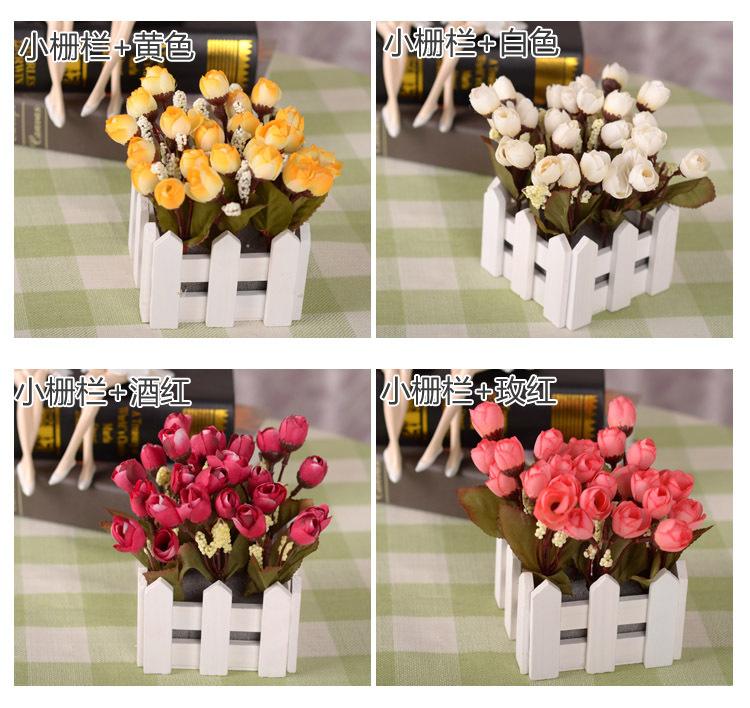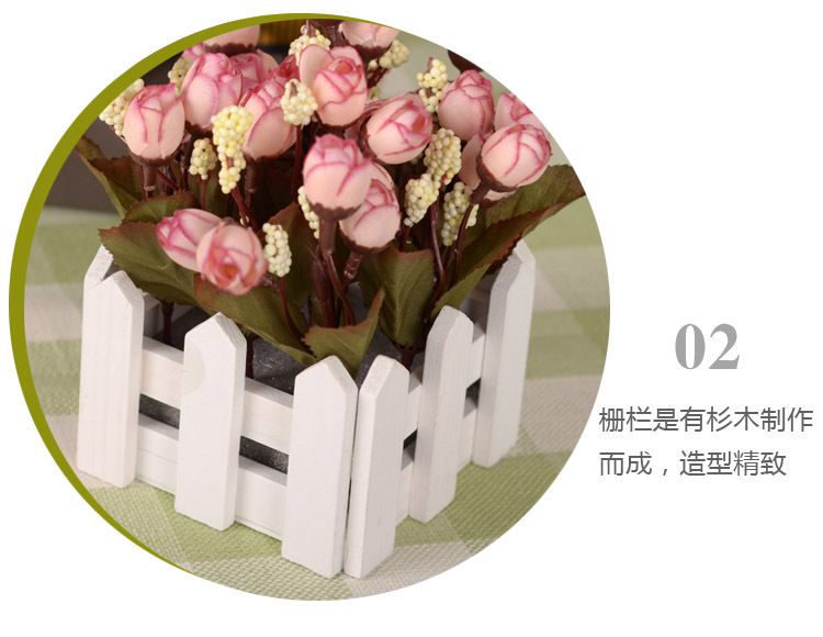小柵欄+玫瑰套裝 仿真花假花絹花客廳擺設花藝 秋色QQ玫套裝特價