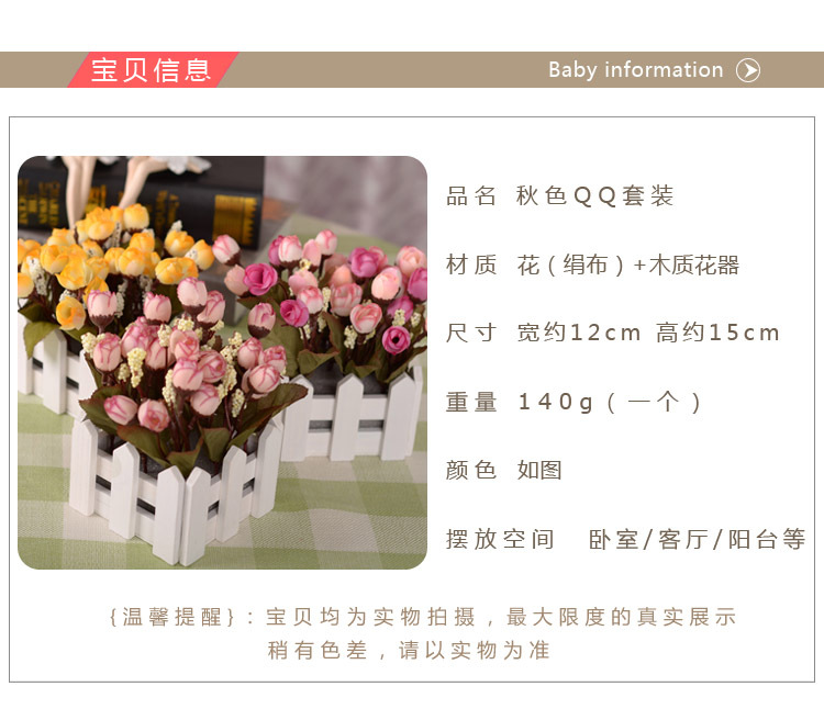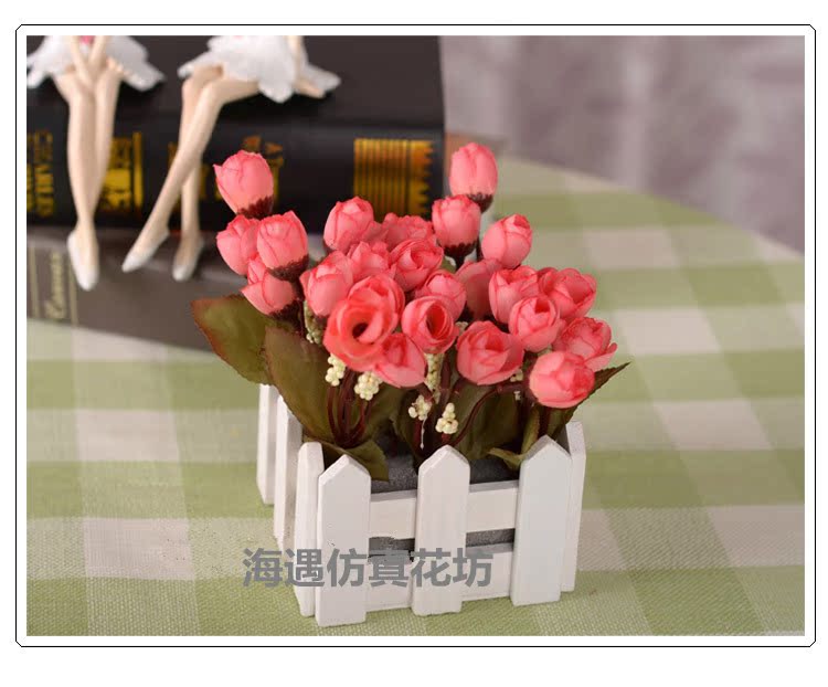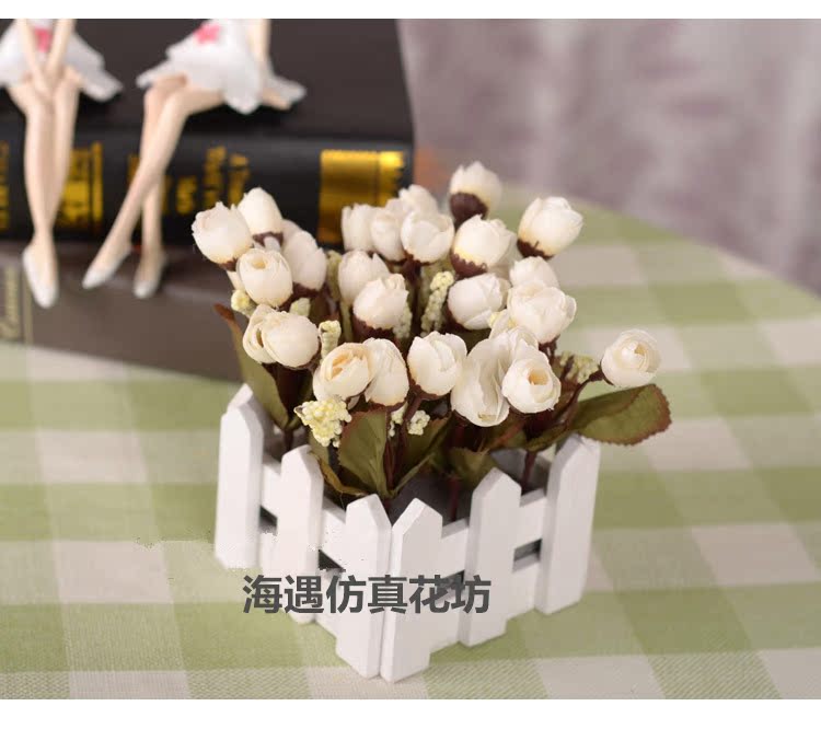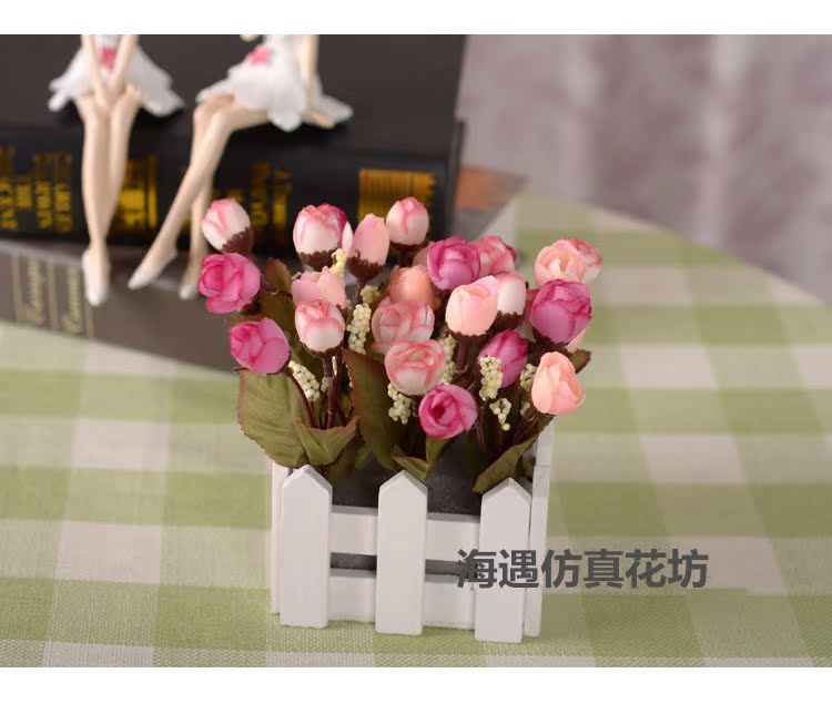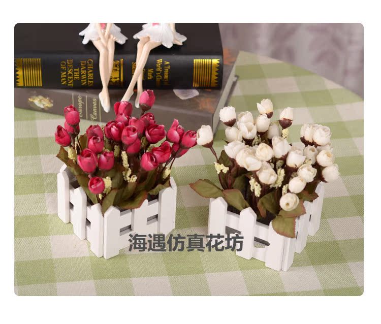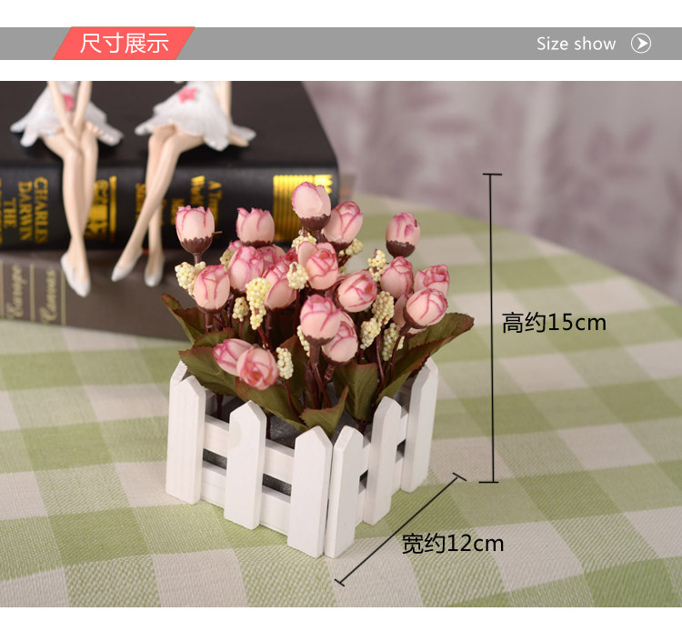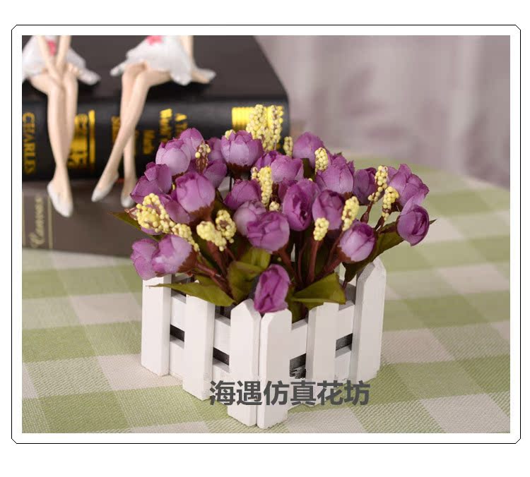 小柵欄+玫瑰套裝 仿真花假花絹花客廳擺設花藝 秋色QQ玫套裝特價
