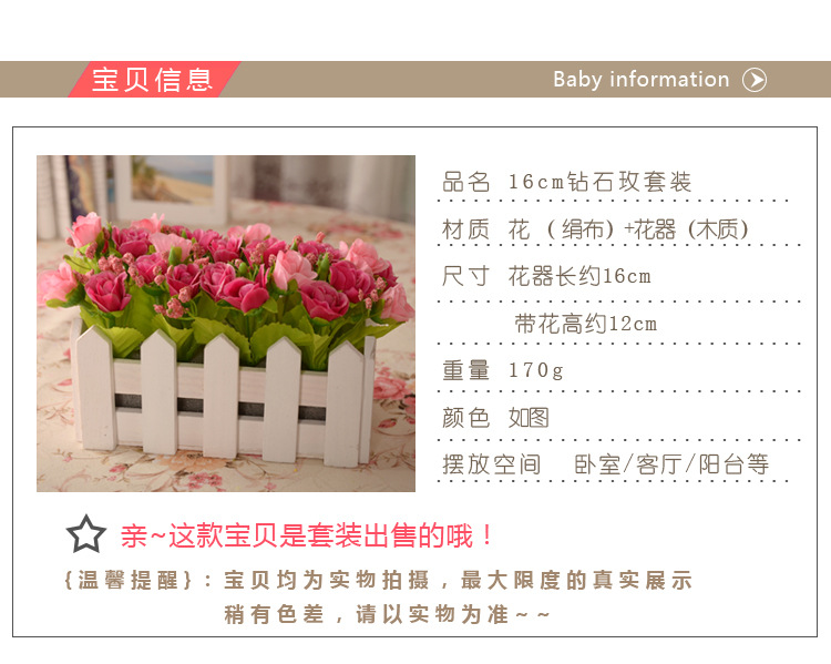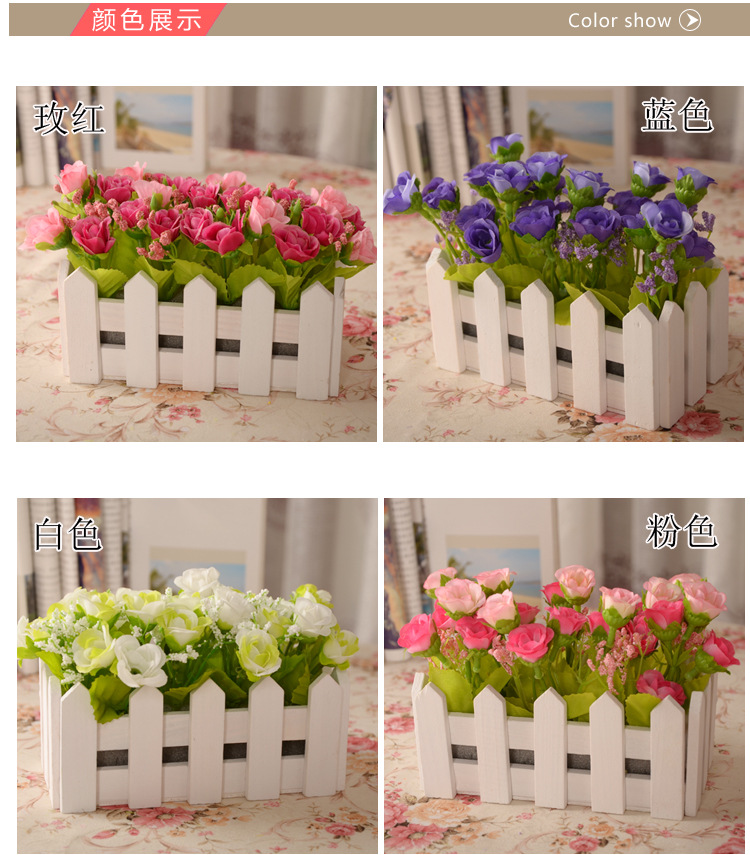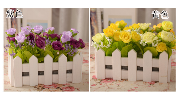 16CM木柵欄+鉆石玫套裝 假花絹花客廳裝飾擺放花藝 玫瑰套裝批發