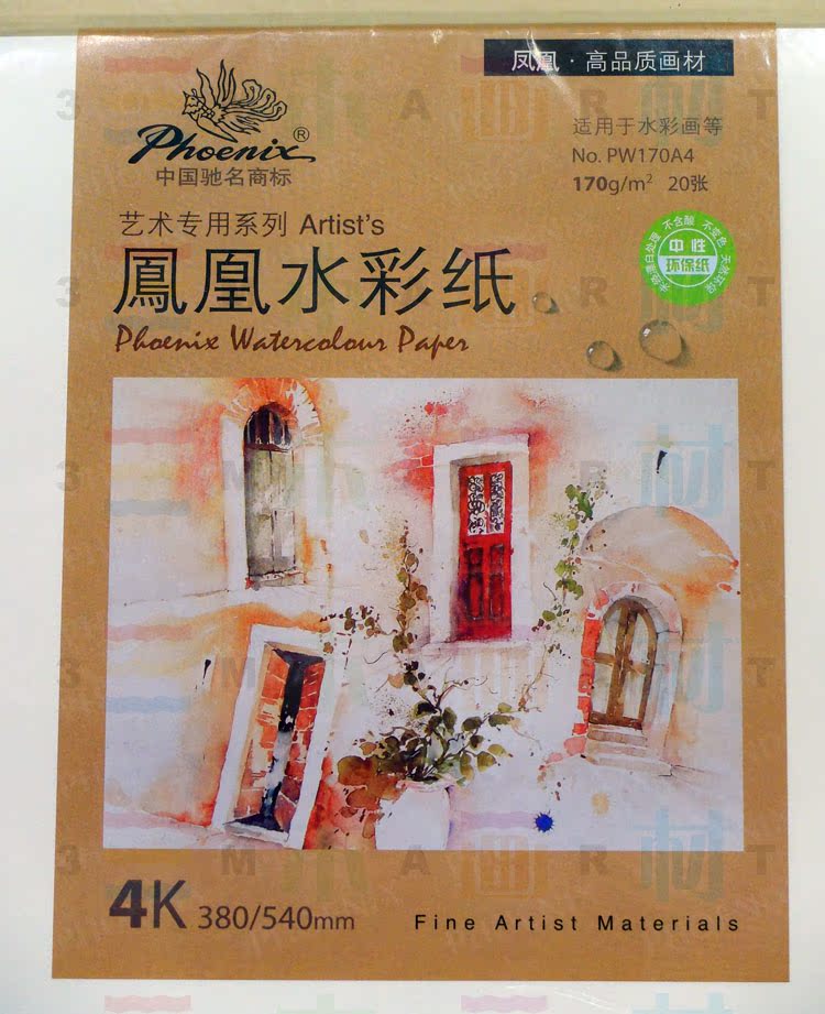 | 本公司大部分商品6一10天到貨。不接急單。急單的客戶請不要下單。感謝諒解與合作! 品名:水彩畫紙 生產廠家:鳳凰花材 規格:4K約540*380mm,紙張厚度:約170g/m2,每包20張 售價:16.80元/包,每張0.84元 細節照片實物拍攝: