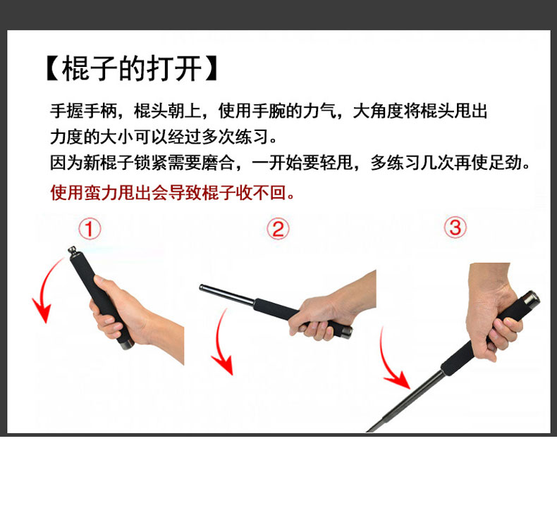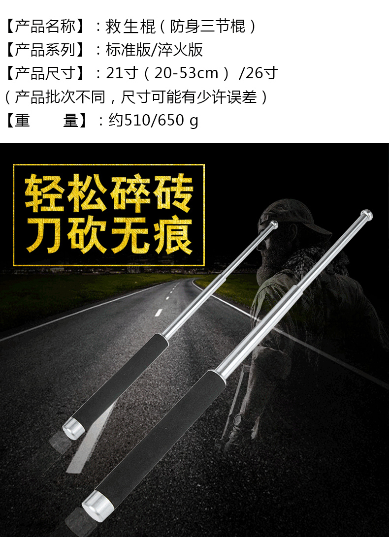 救生棍野人三節棍伸縮棍子防身棍車載武器用品摔棍鋼甩棒戶外用品1入