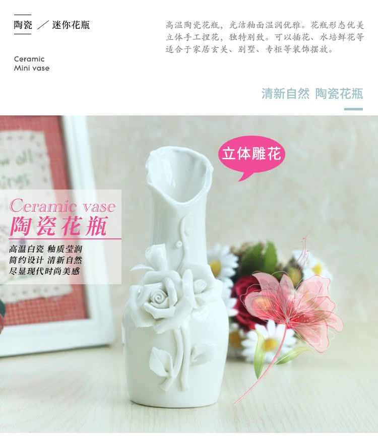 純手工花瓶擺件陶瓷迷你花插白色瓷創意家居裝飾品原創捏花小花器