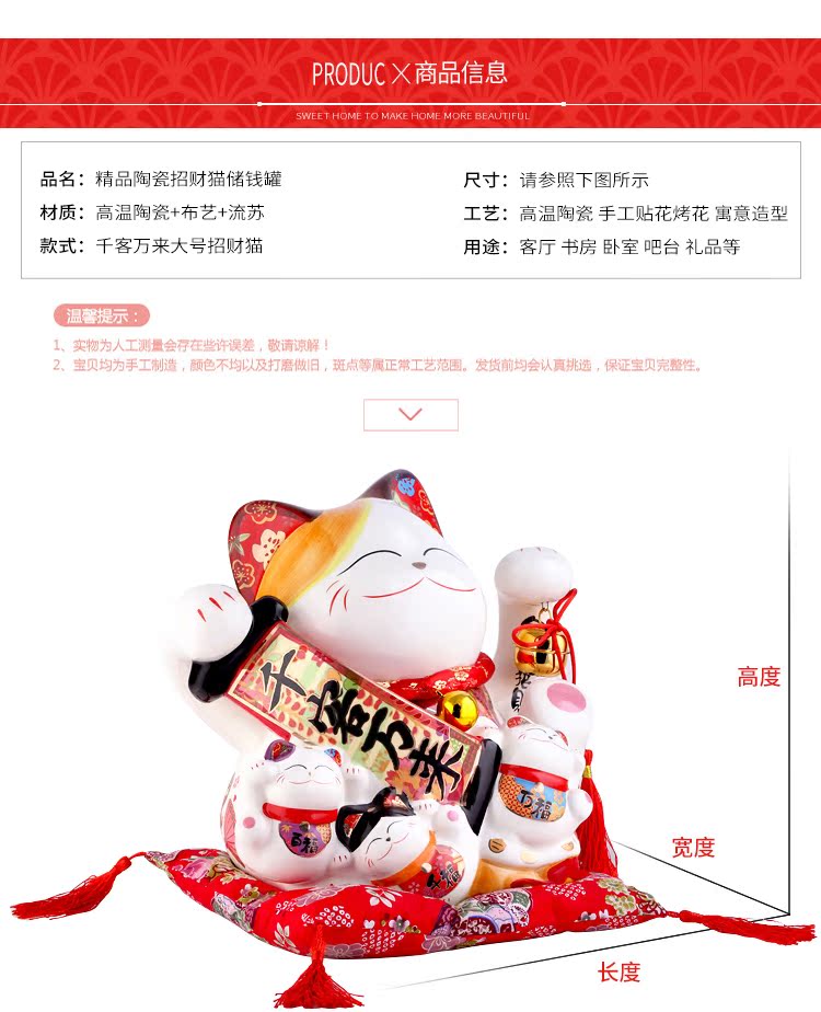 千客萬來陶瓷招財貓家居擺件特大號存錢儲蓄罐店鋪開業張創意禮品