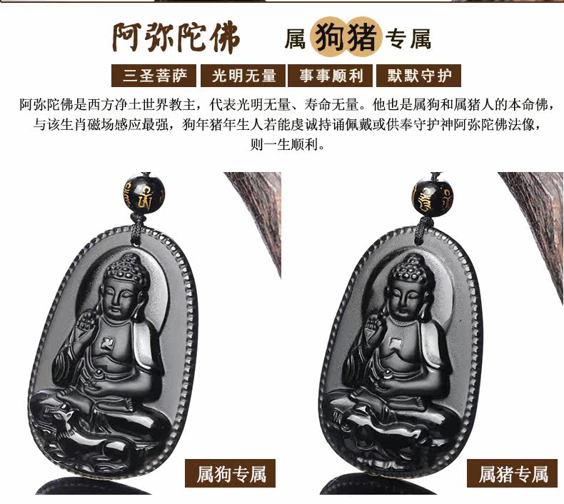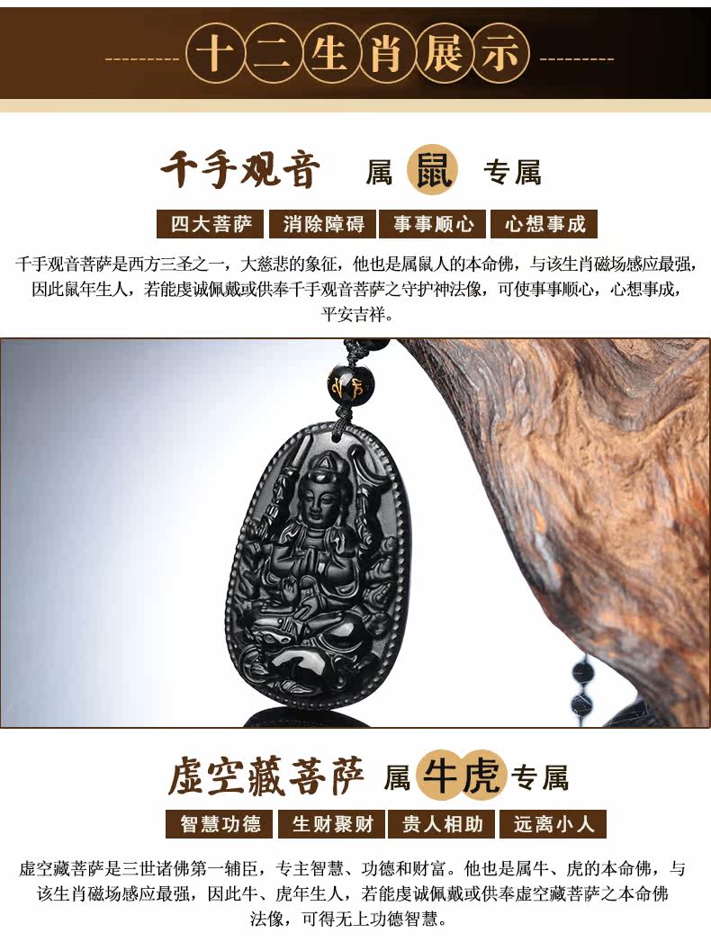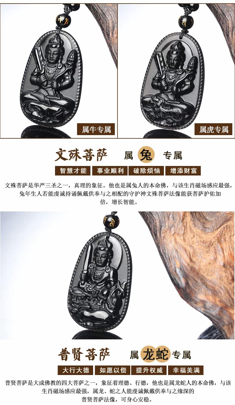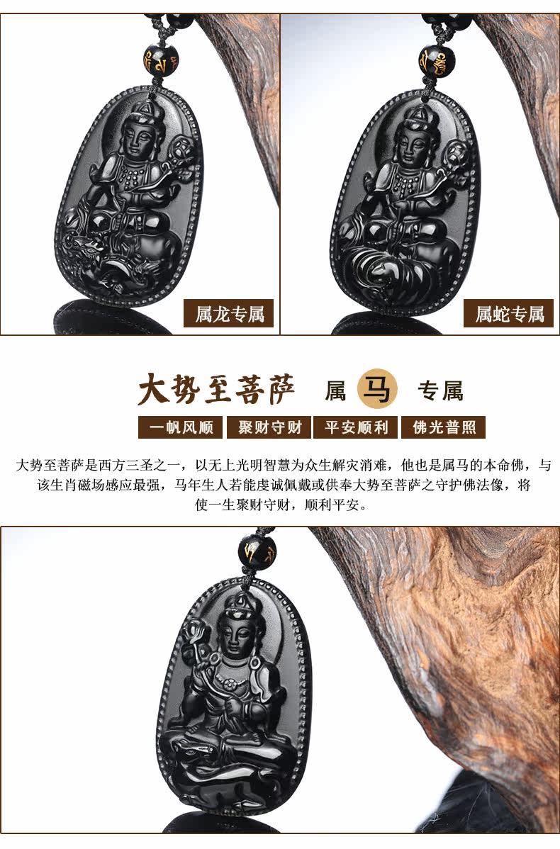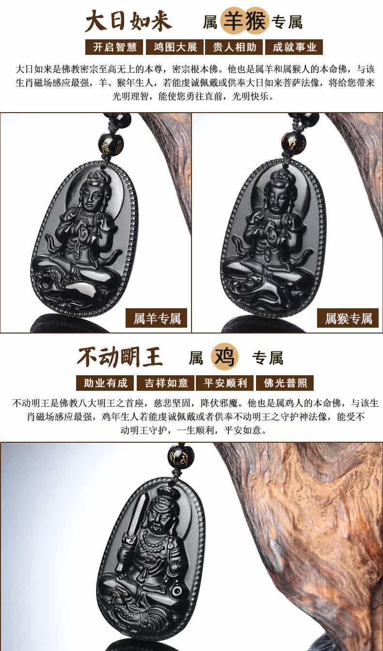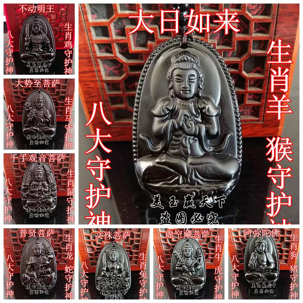 黑曜石十二生肖本命佛八大守護神千手觀音普賢文殊菩薩吊墜送項鏈