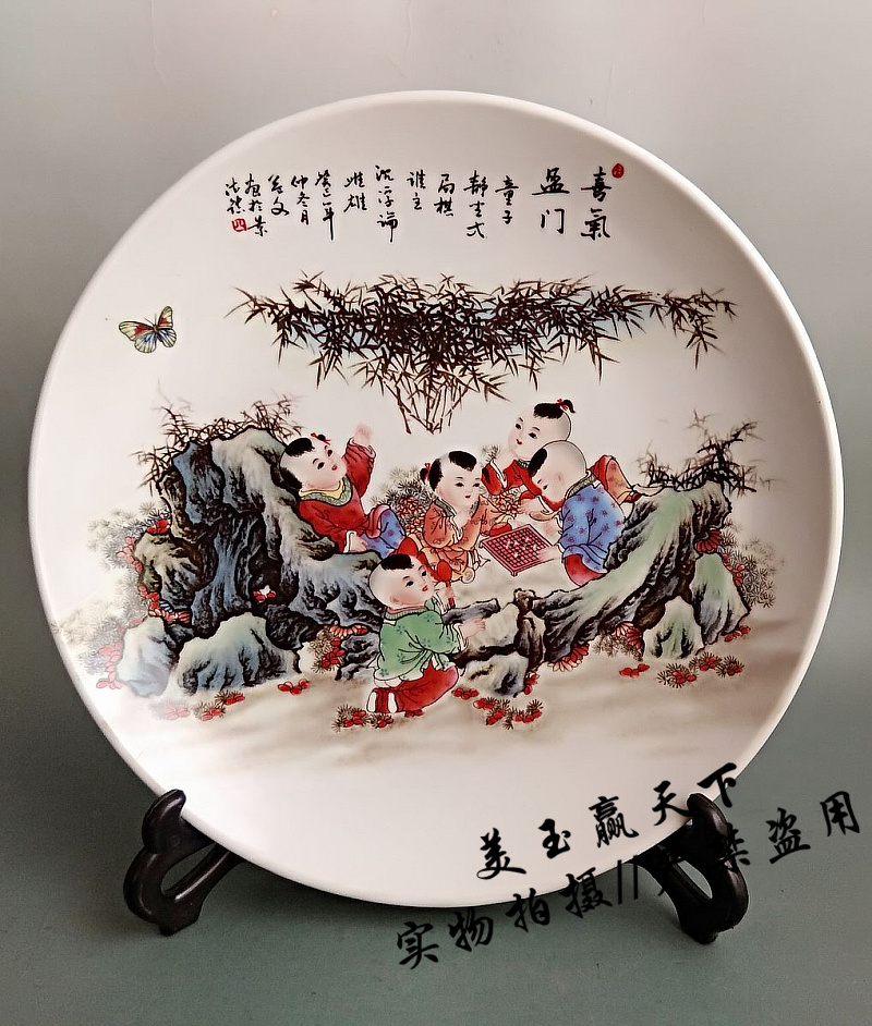 仿古大清乾隆年制粉彩童子圖瓷盤子仿古做舊瓷器家居擺件