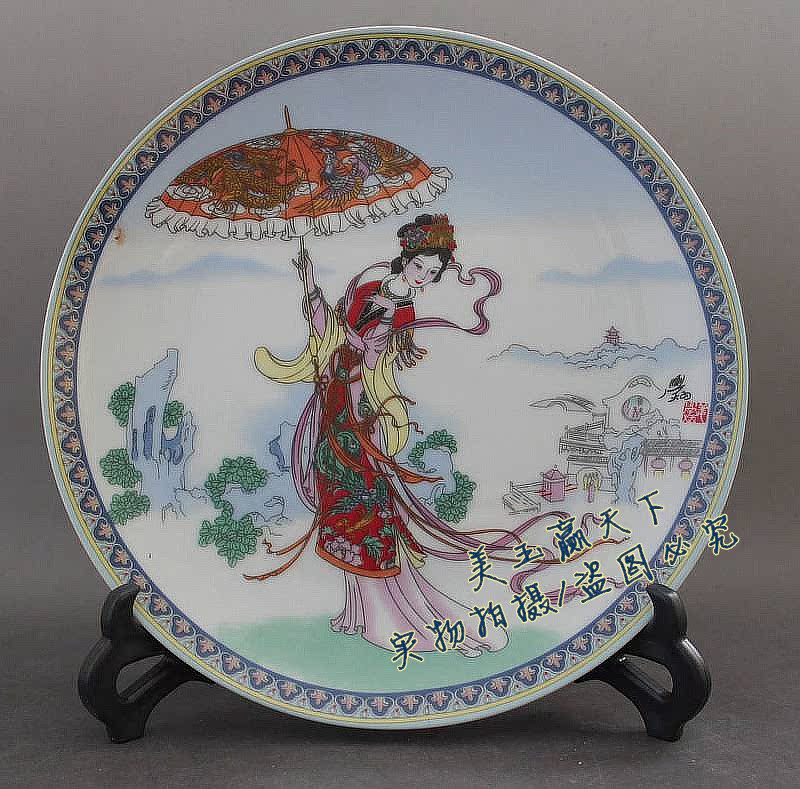 仿古陶瓷器人物盤子擺件送架子家居裝飾品工藝品擺件