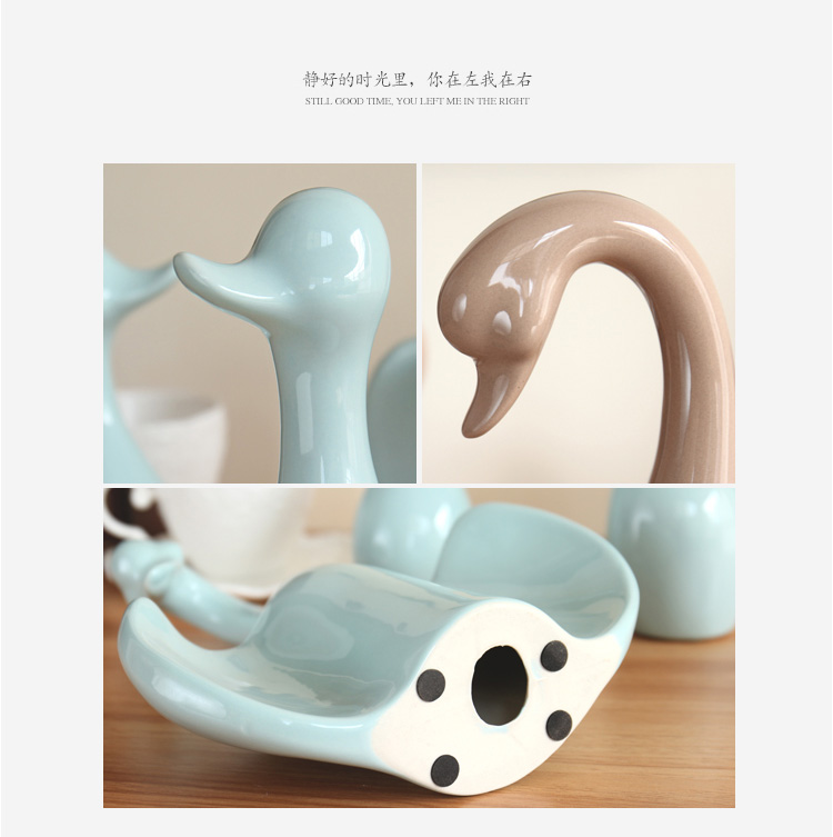 創意家居飾品酒柜裝飾品客廳臥室陶瓷工藝品擺件結婚禮物天鵝擺設