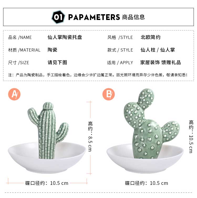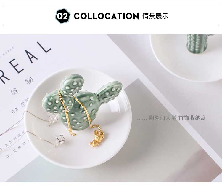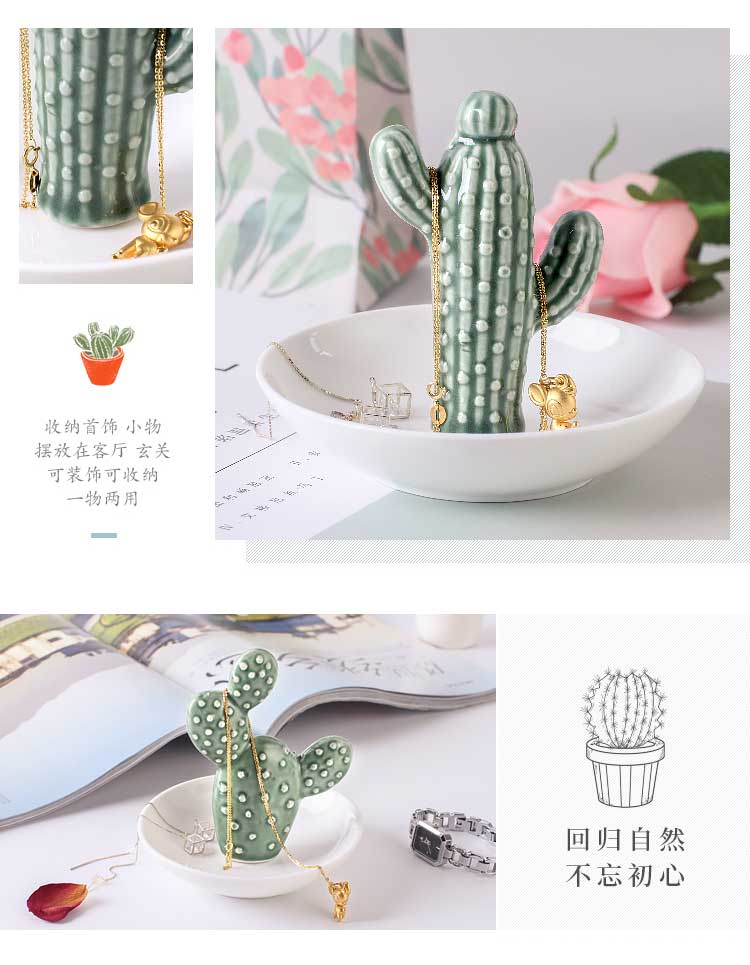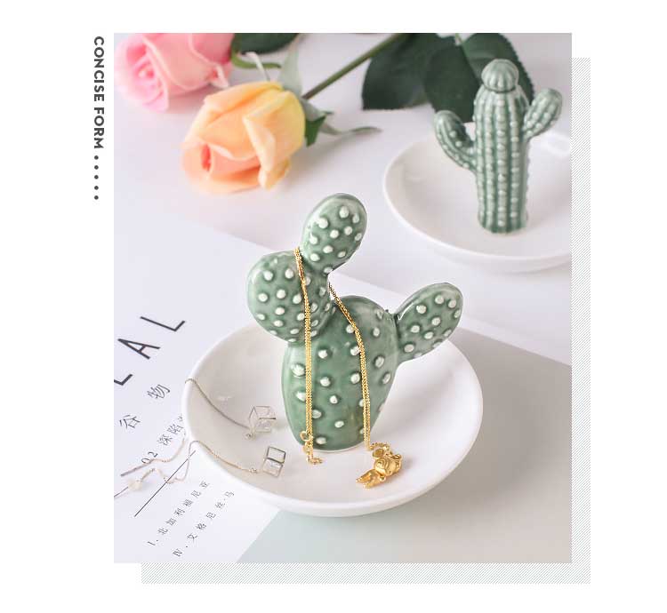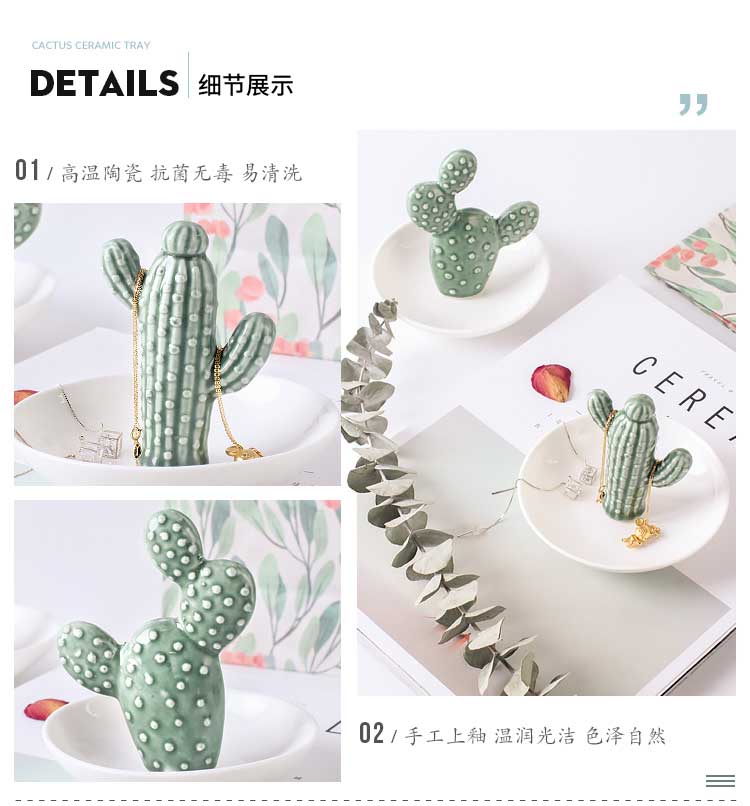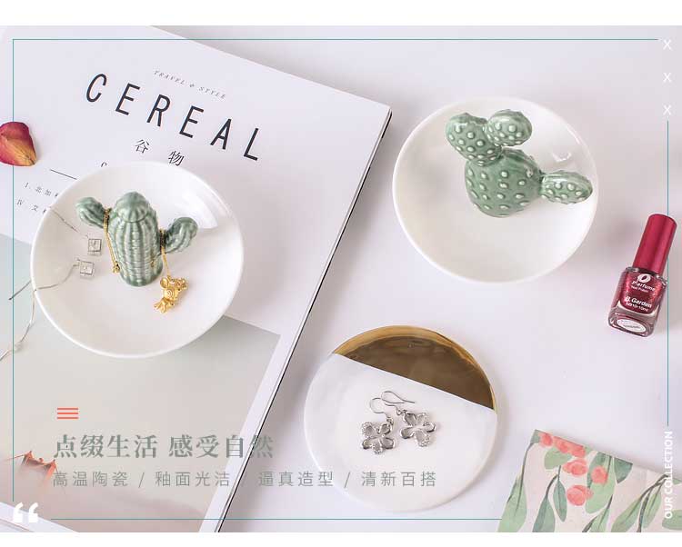 綠植系仙人掌陶瓷首飾儲物盤客廳電視柜茶幾擺件辦公室小收納擺設