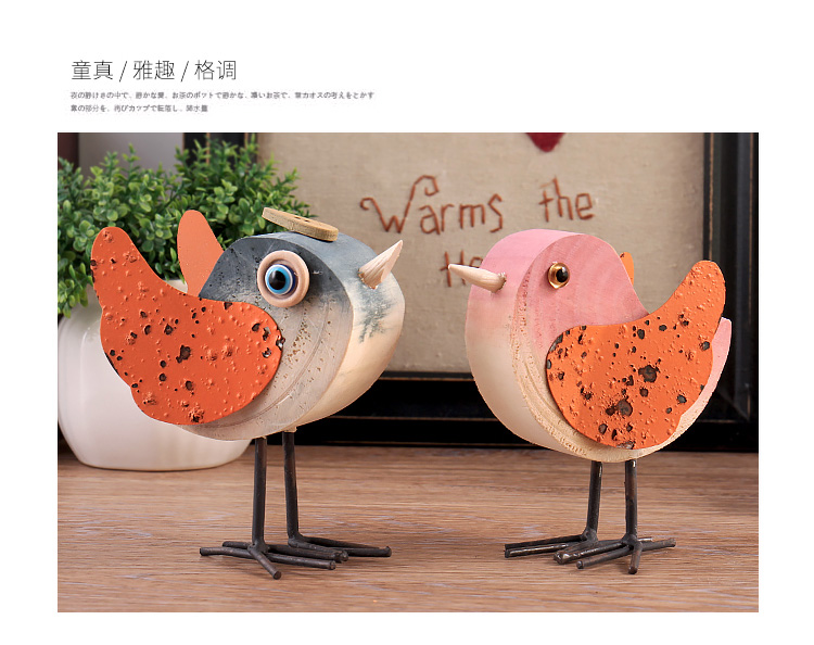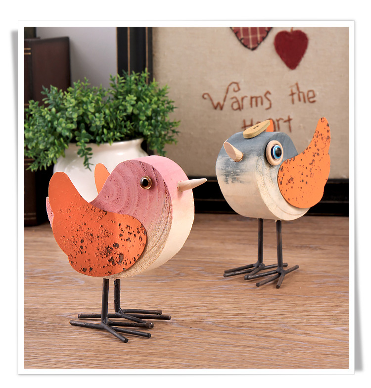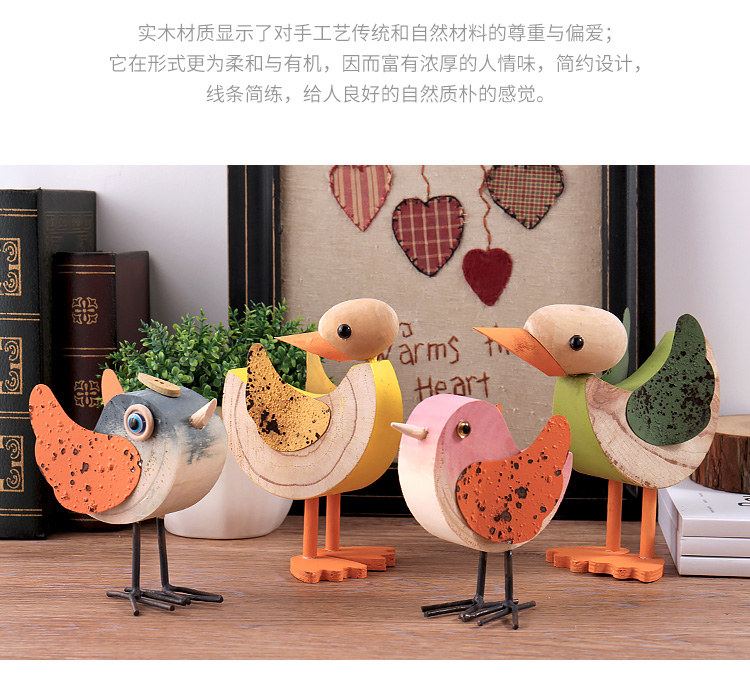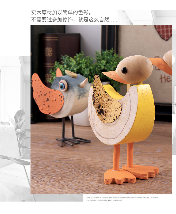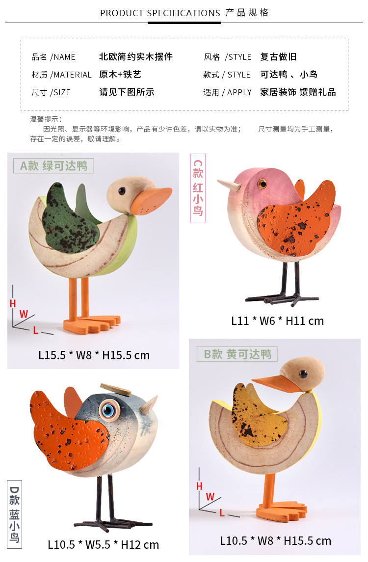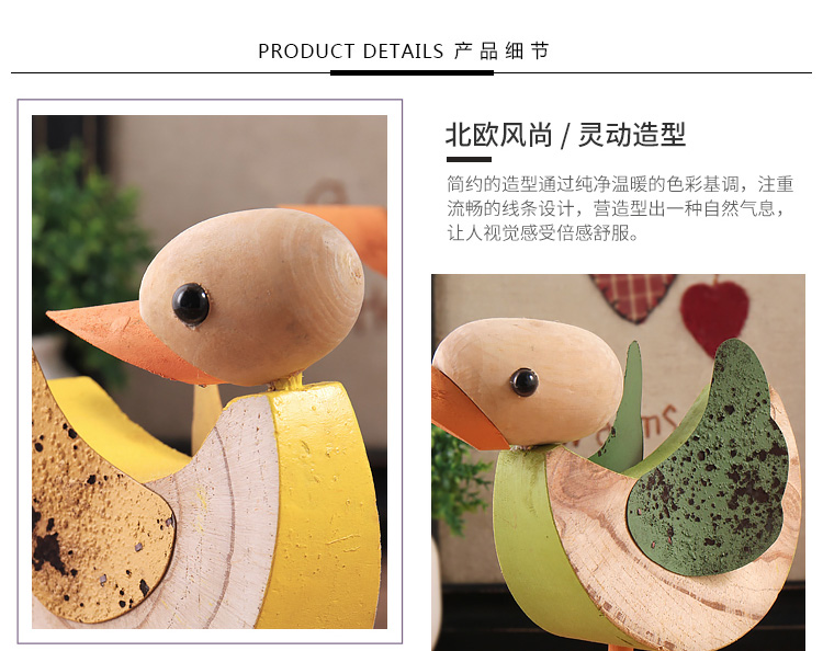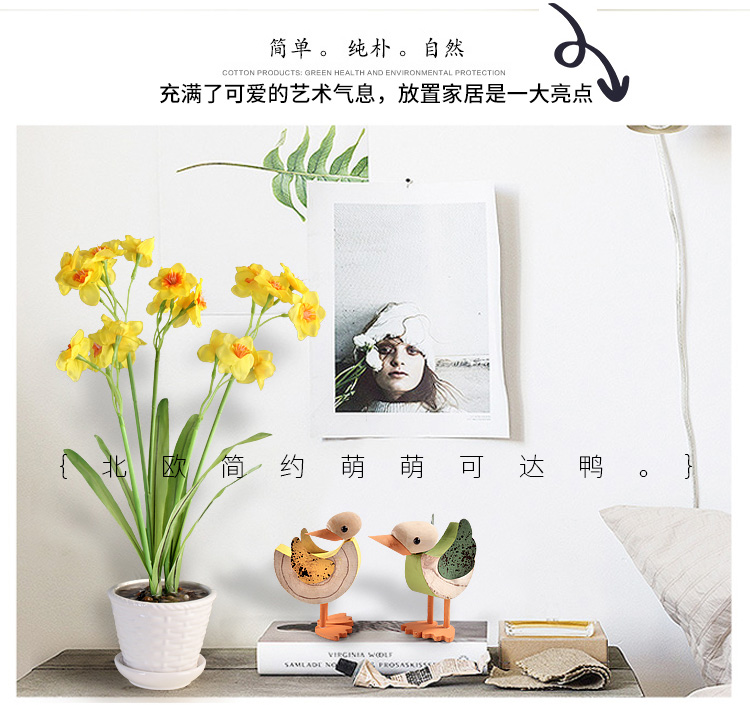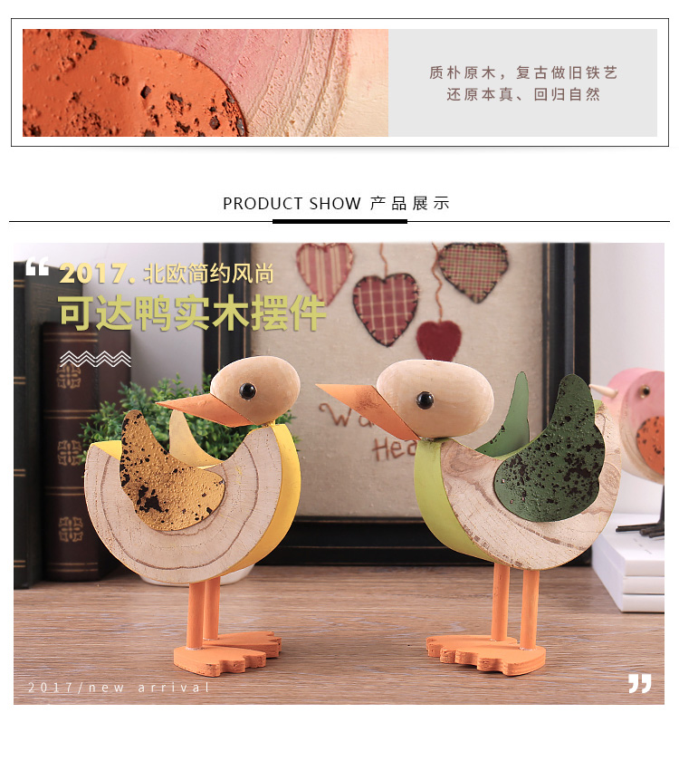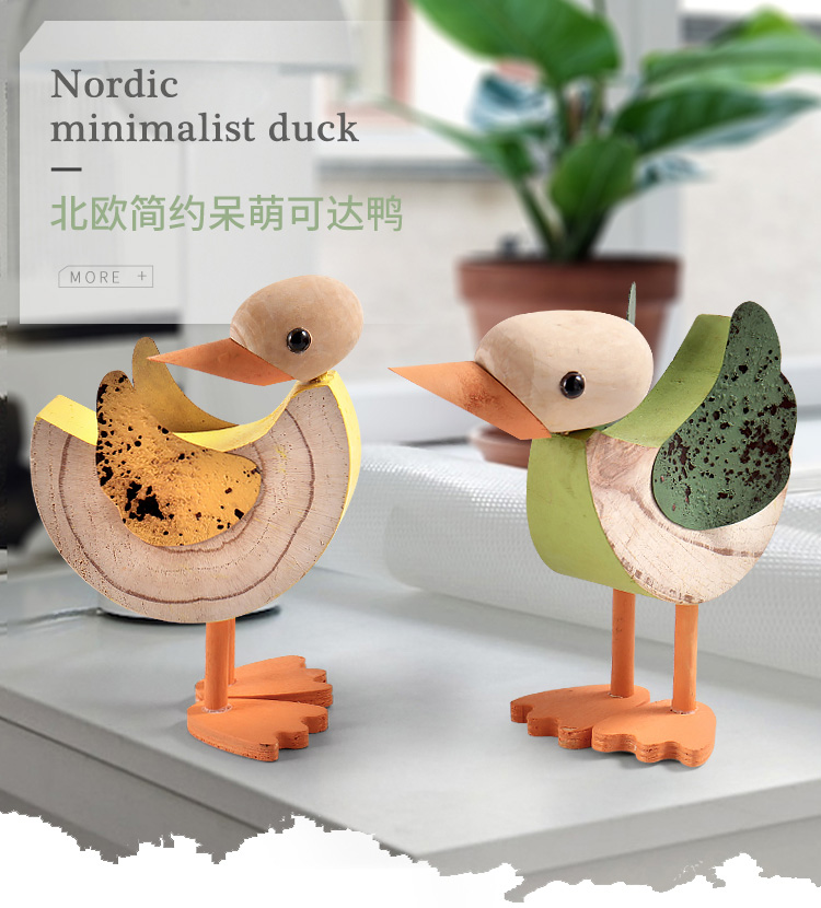 北歐創意原木鴨子擺件家居裝飾品兒童房間臥室桌柜小鳥鐵藝擺設
