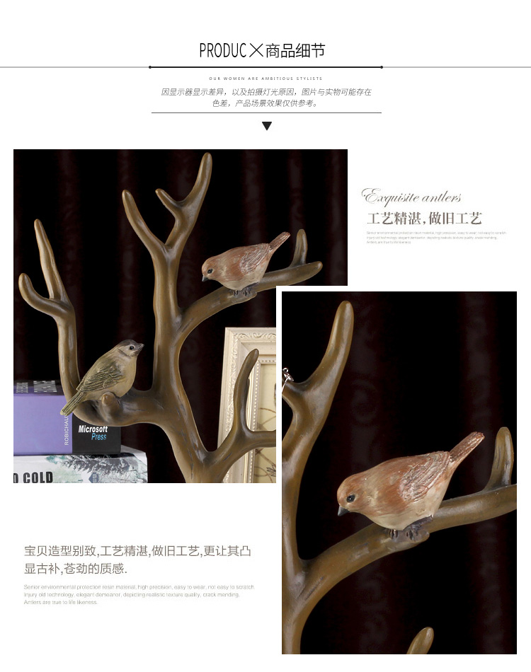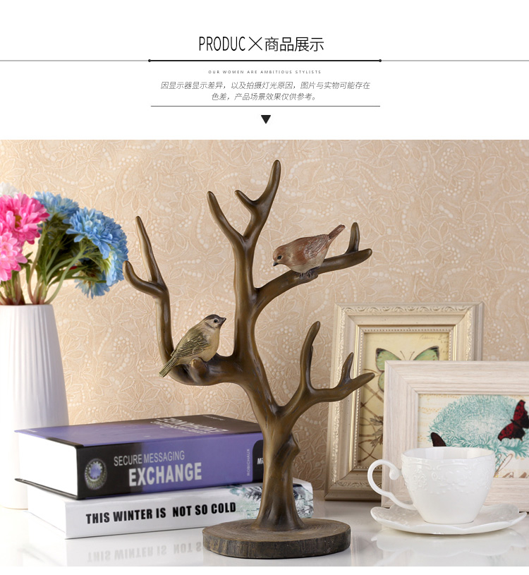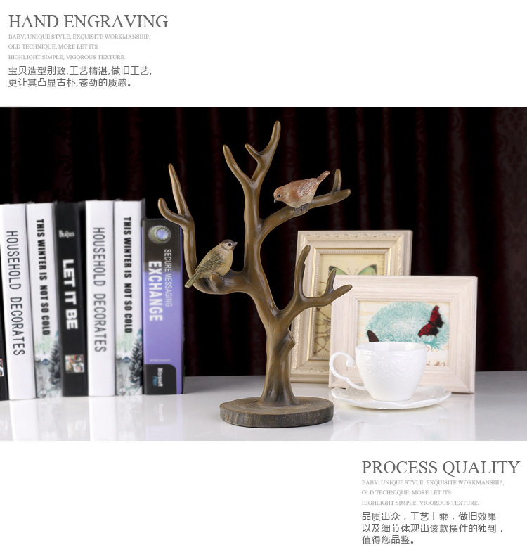 美式鄉村復古樹枝小鳥首飾架家居客廳擺設