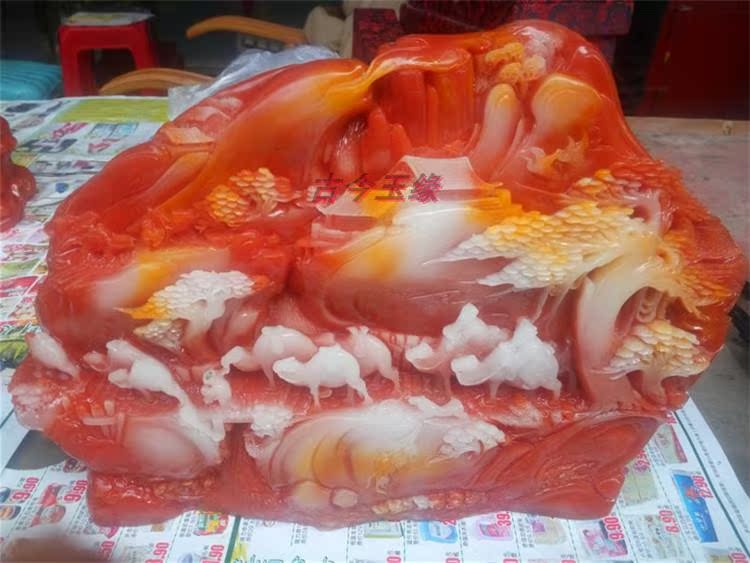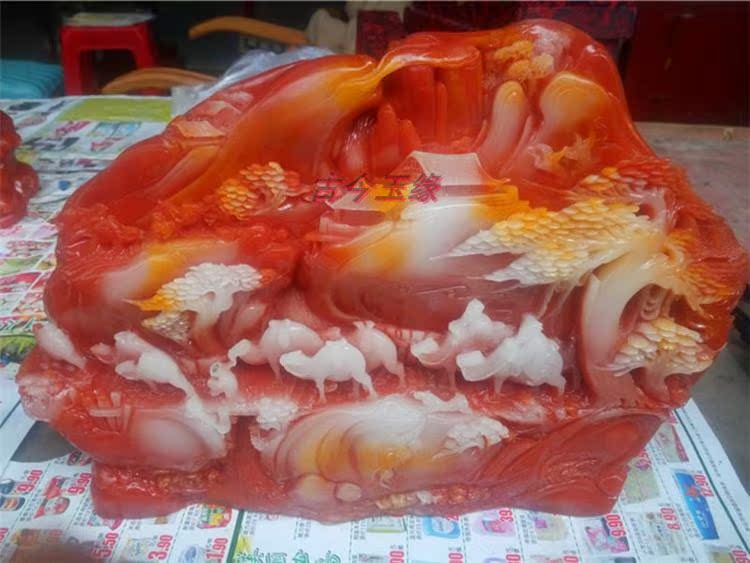 高仿壽山石精雕芙蓉石走馬上任玉擺件雞血玉家居飾品風水鎮宅1入
