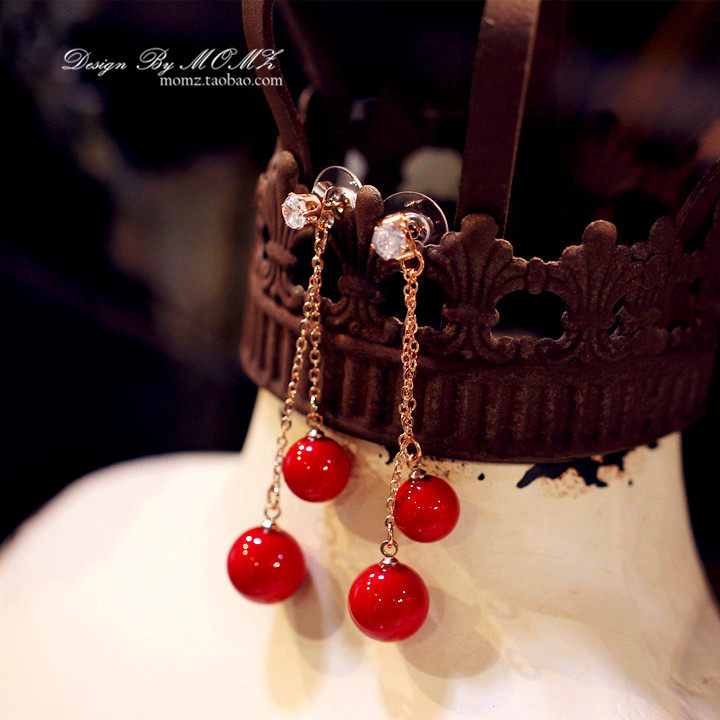 魔貓昭昭耳環耳線氣質長款吊墜高檔長款紅色性感個性大氣時尚1入