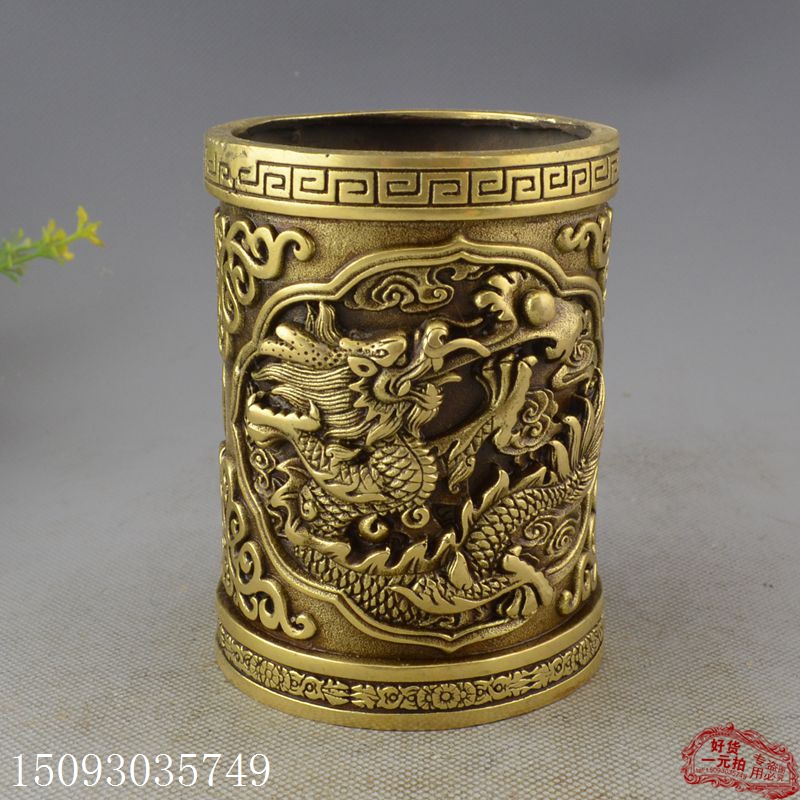 銅器收藏黃銅古玩仿古工藝禮品擺件 裝飾道具 龍筆筒文房用具