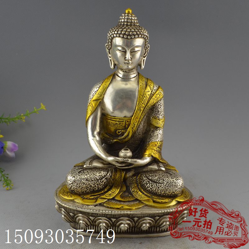古玩銅器收藏白銅黃銅鍍銀風水擺件家居裝飾擺件工藝品 釋迦摩尼