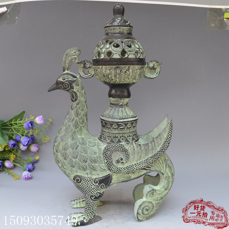 古玩銅器收藏戰國漢代青銅器擺件 家居裝飾 工藝禮品 孔雀爐