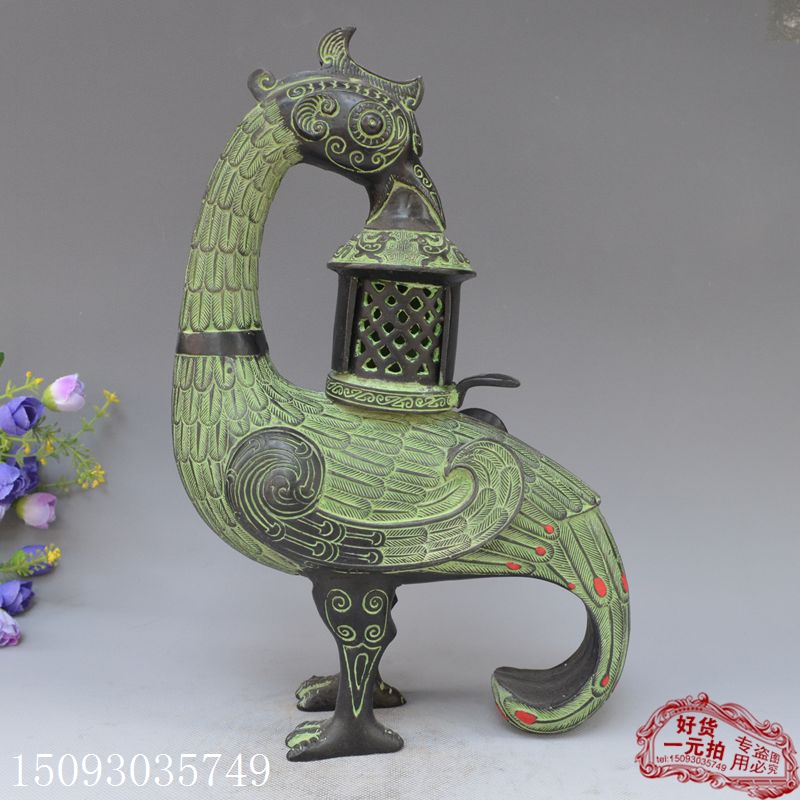 古玩銅器收藏戰國漢代青銅器擺件 家居裝飾 工藝禮品 鏤空鳥燈