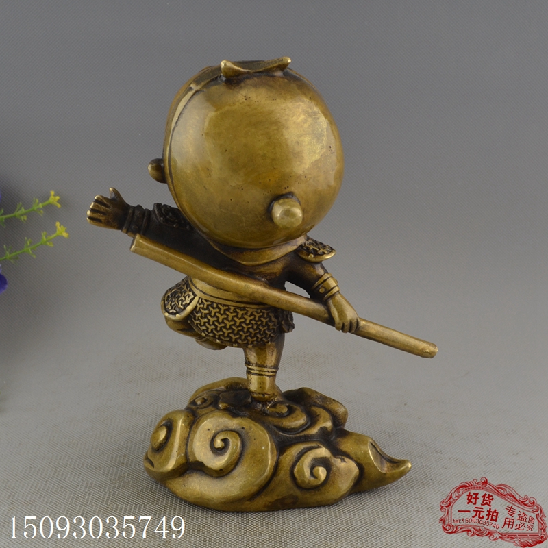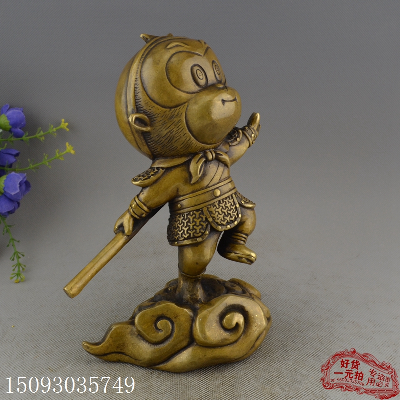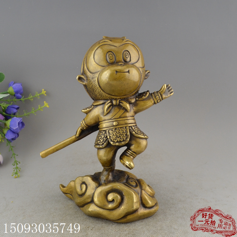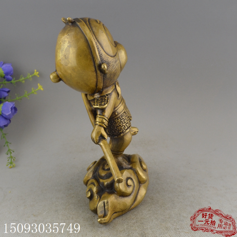 銅器收藏黃銅白銅鍍銀古玩仿古工藝禮品擺件 裝飾道具 卡通孫悟空