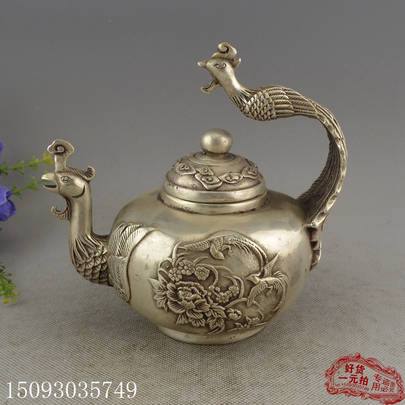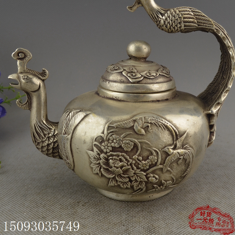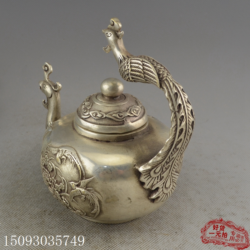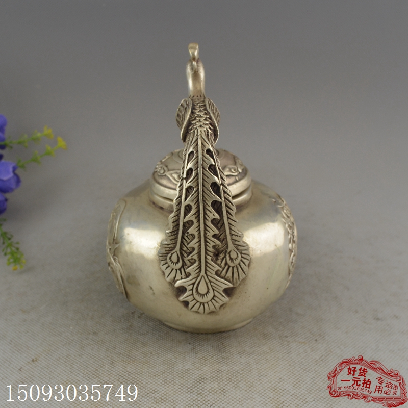 銅器收藏黃銅白銅鍍銀古玩仿古工藝禮品擺件 裝飾道具 孔雀水壺