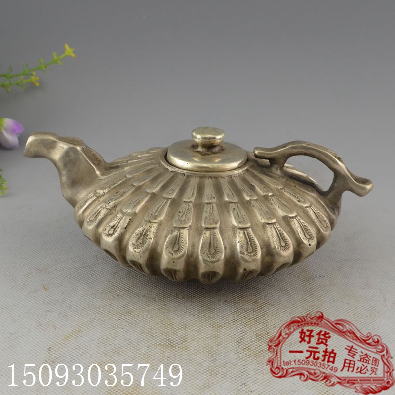 古玩銅器收藏白銅黃銅鍍銀風水擺件家居裝飾擺件工藝品 孔雀壺