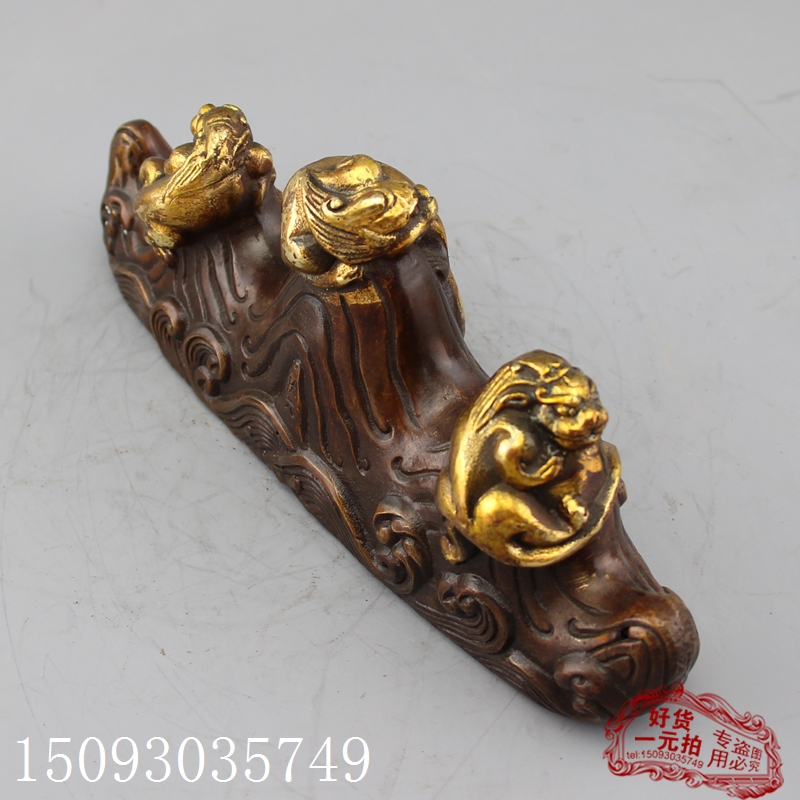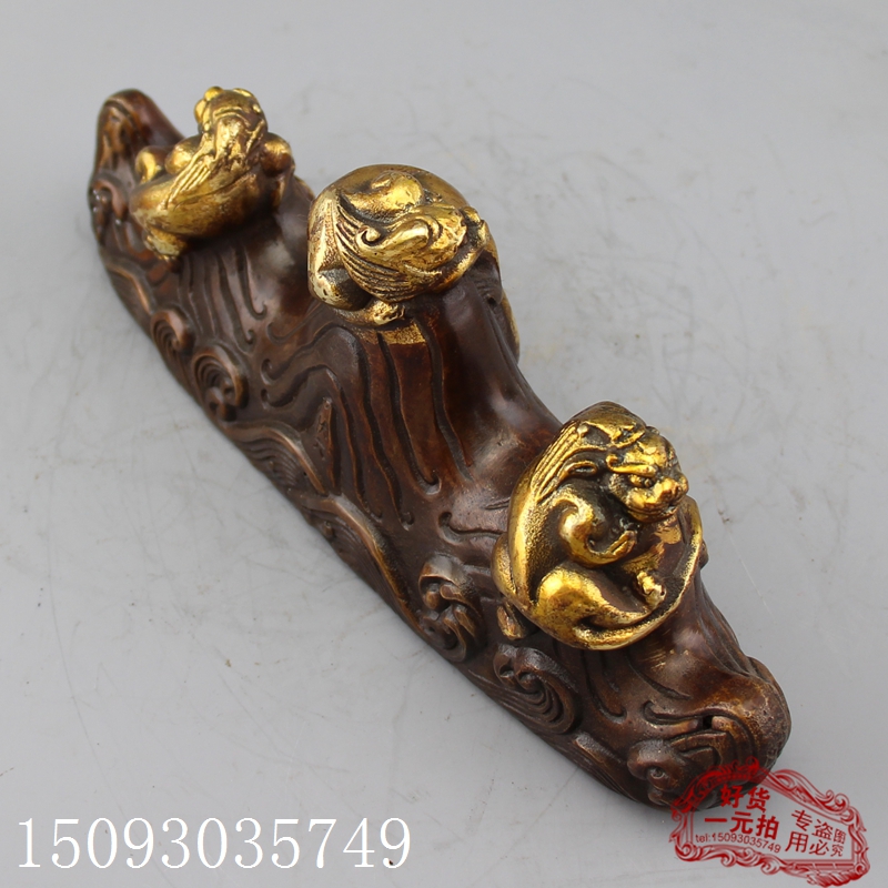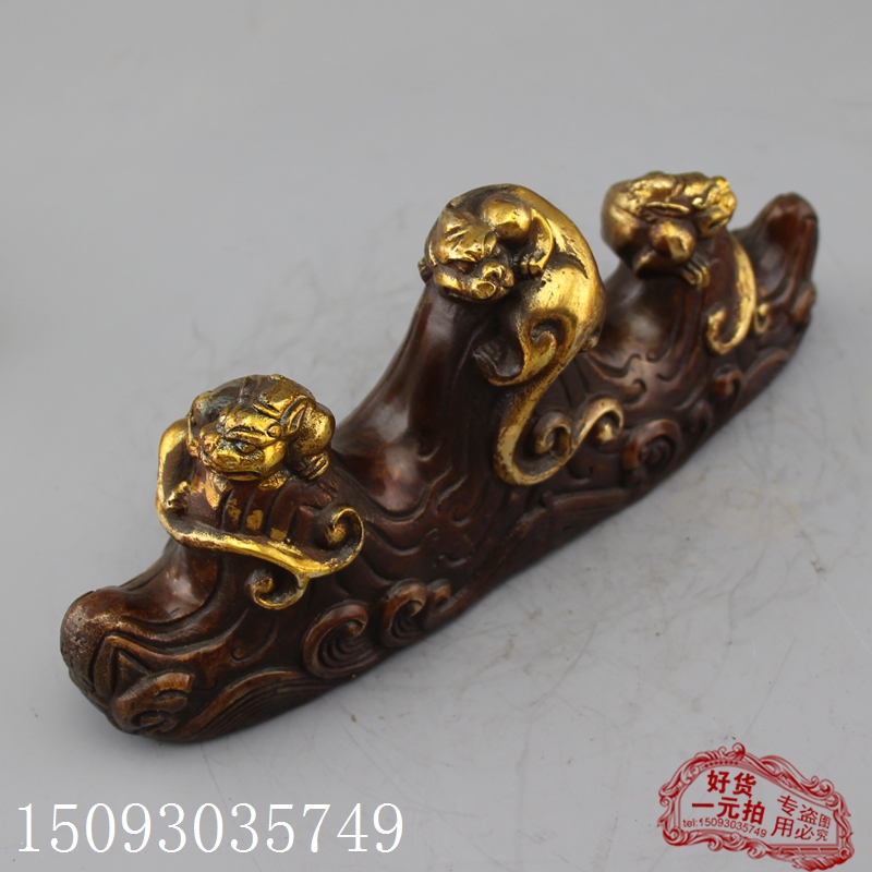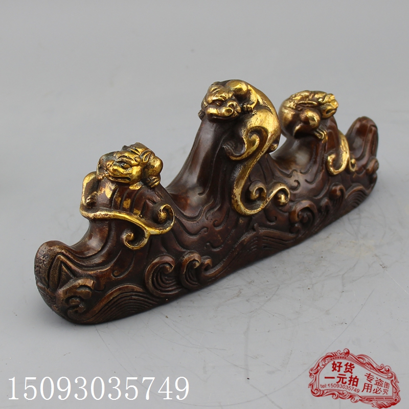 品名:古銅色鎏金貔貅筆架 仿古做舊 飛黃騰達