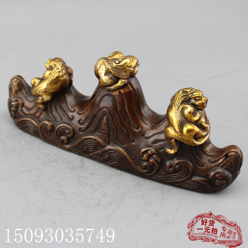 銅器收藏黃銅擺件文房四寶銅筆架筆托書畫禮品貔貅筆架狀元筆架