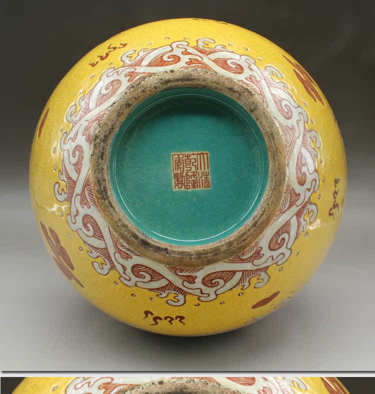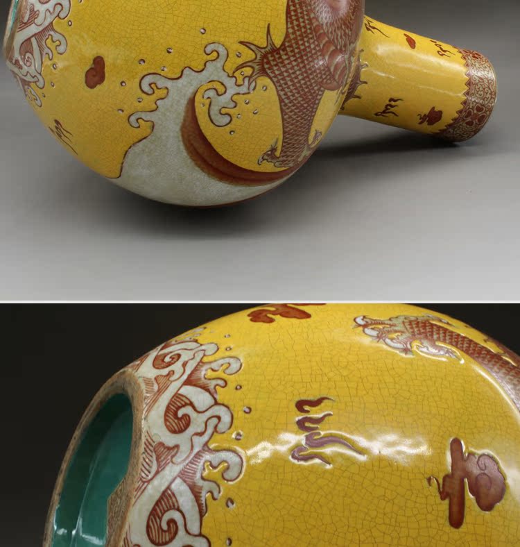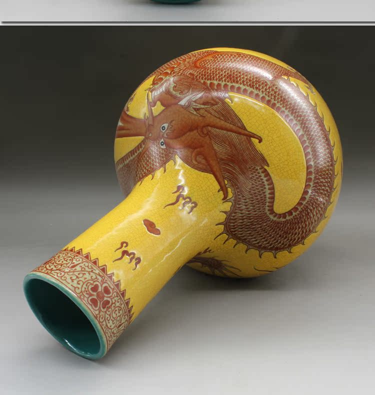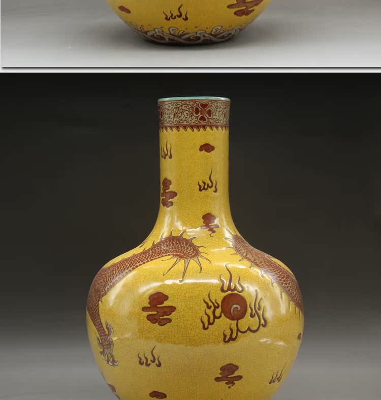 仿清乾隆黃釉龍紋天球瓶古玩瓷器老貨古董老陶瓷老物件擺件收藏1入