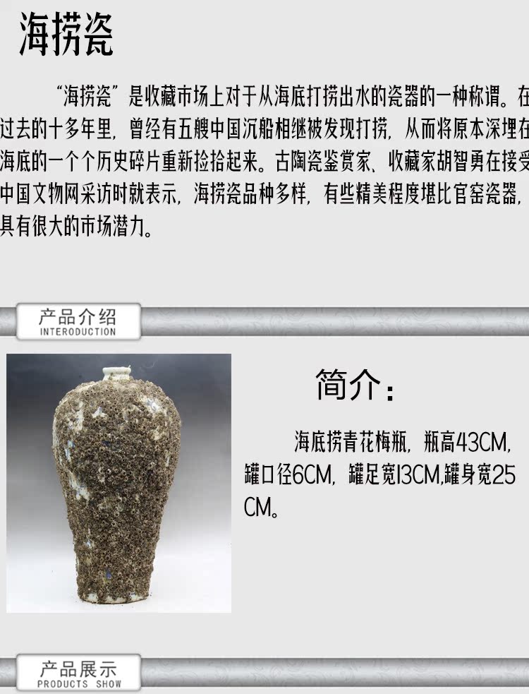 元海撈青花瓷梅瓶大號古玩瓷器老貨古董老物件舊貨擺件收藏廠貨1入