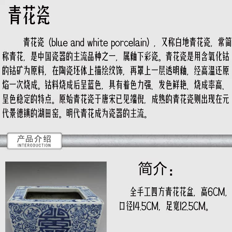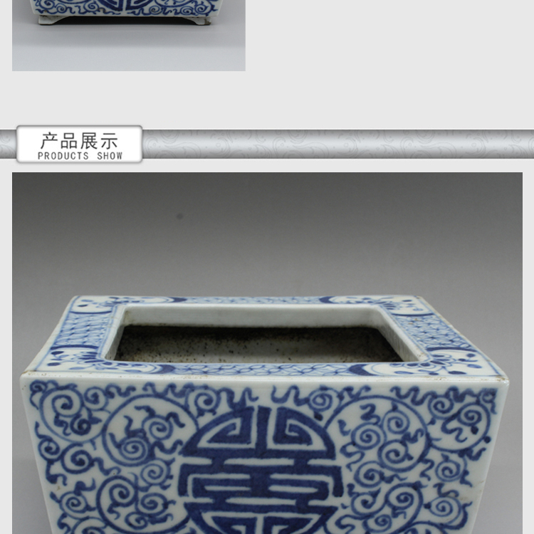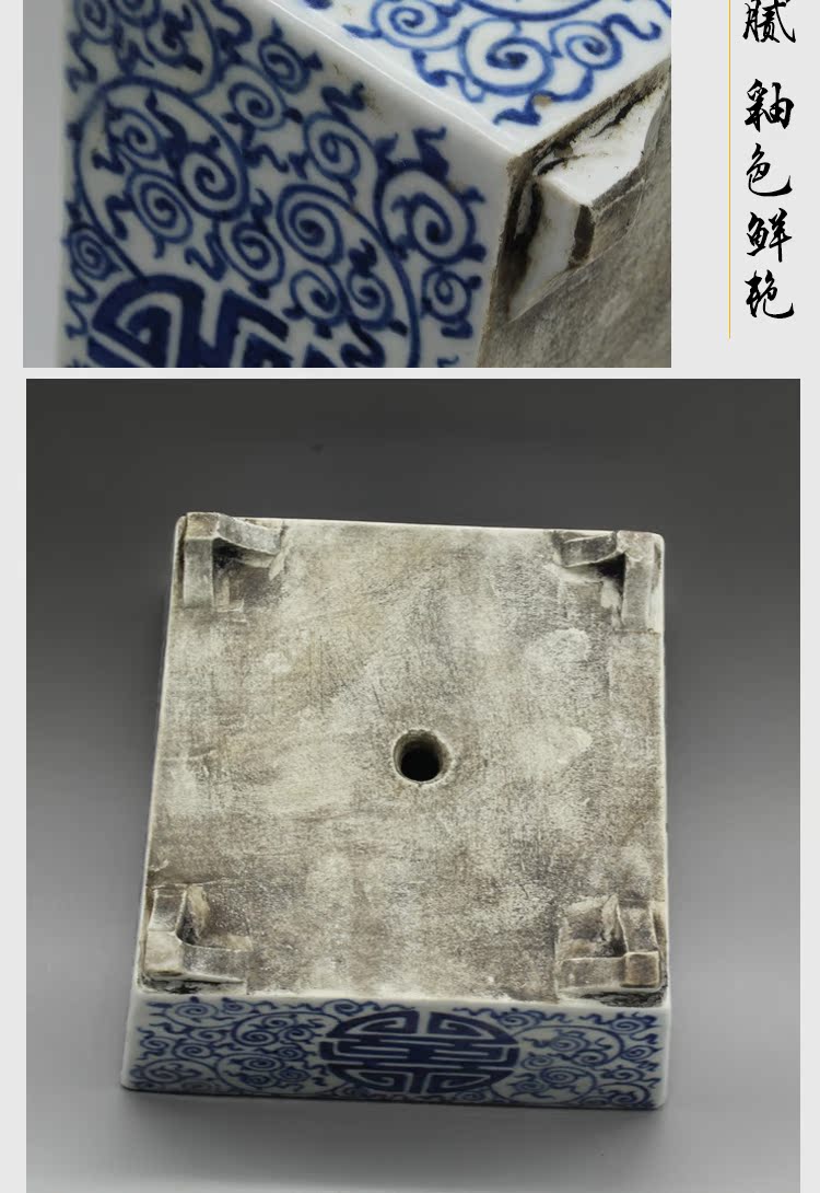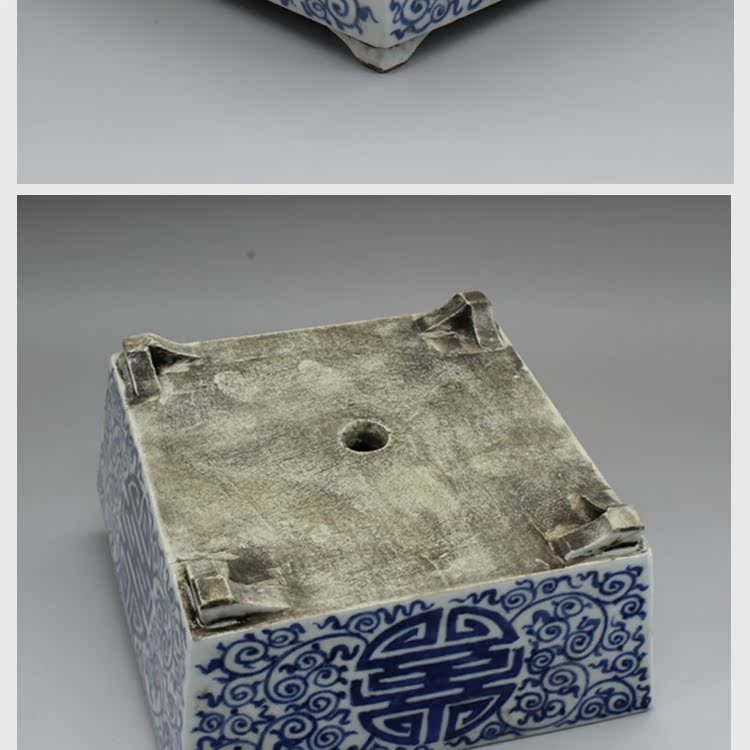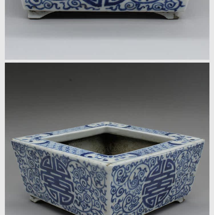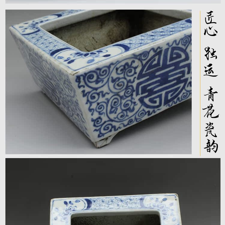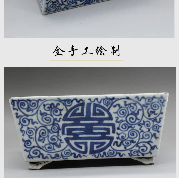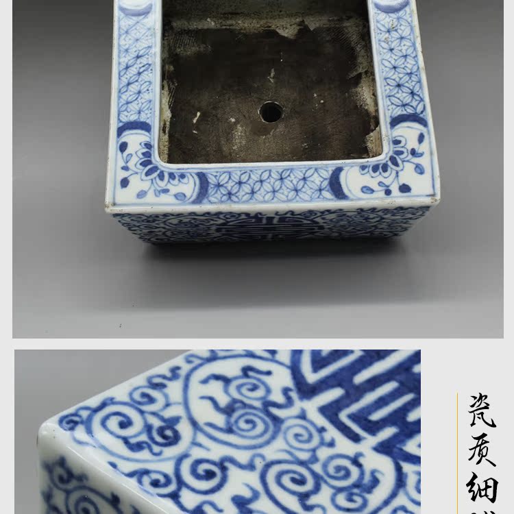 清乾隆手繪青花多肉菖蒲四方花盆古玩瓷器老貨古董老陶瓷擺件收藏1入