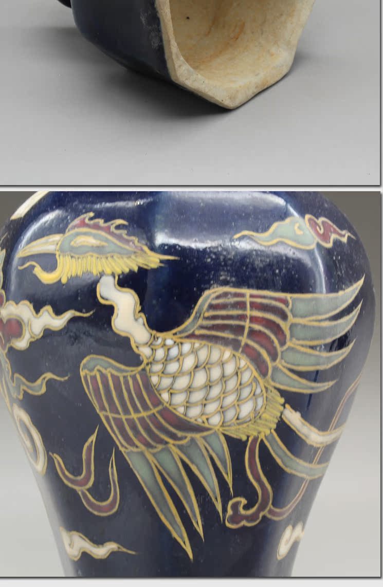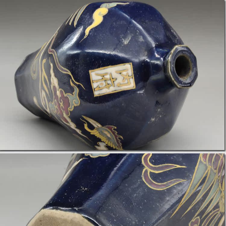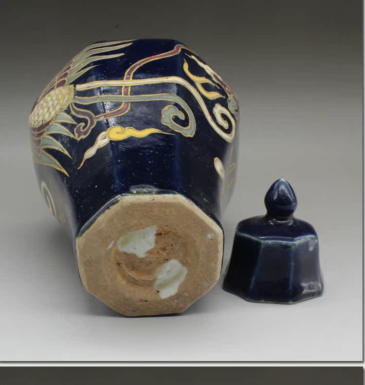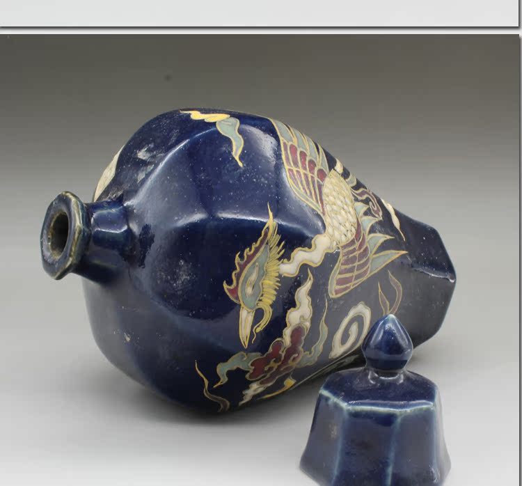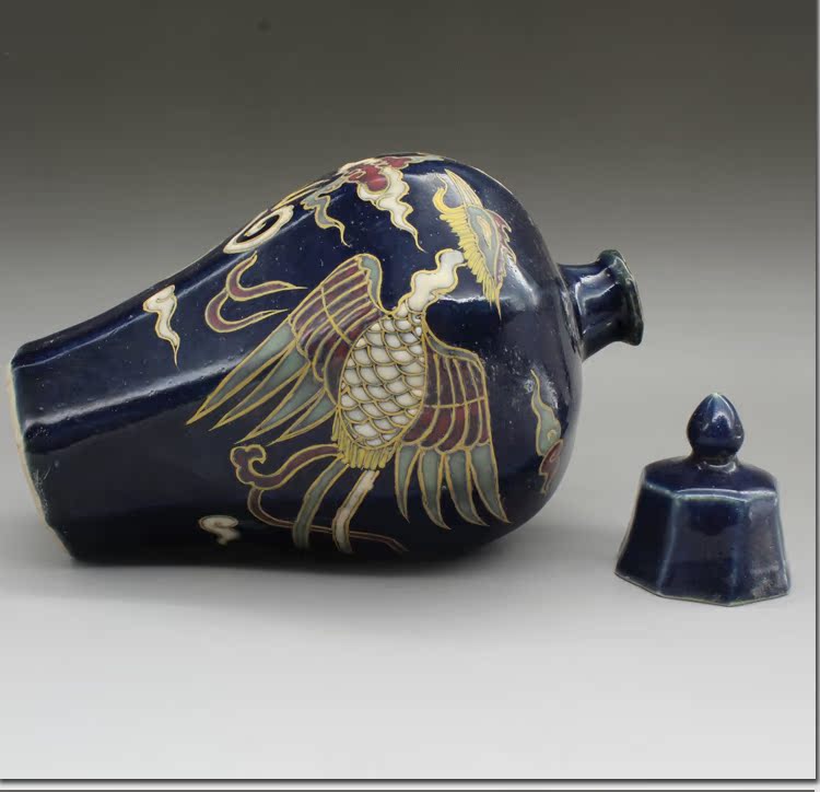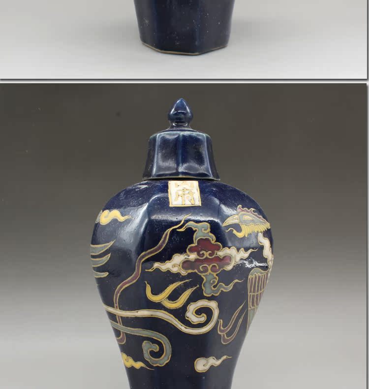 元霽藍內府帶蓋梅瓶古董老陶瓷古玩瓷器老貨老物件仿古擺件收藏1入