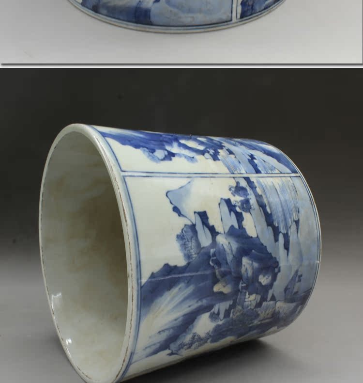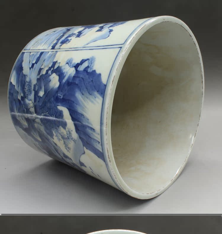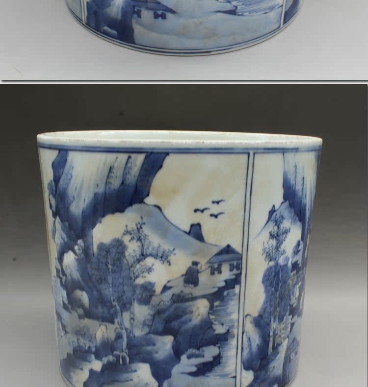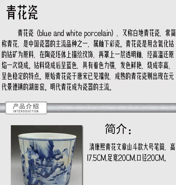 清康熙青花故事大號筆筒古玩古董老陶瓷舊貨仿古做舊擺件收藏品1入