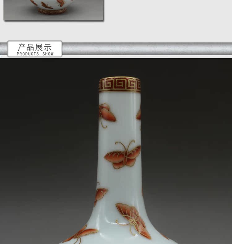 仿清雍正粉彩蝴蝶膽瓶古玩瓷器老貨古董老陶瓷老物件仿古擺件收藏1入