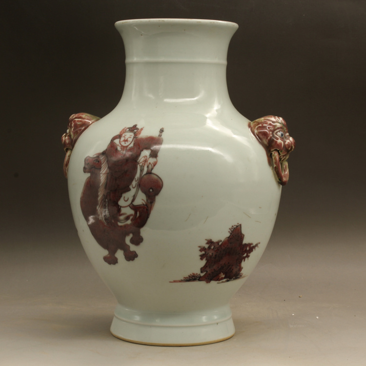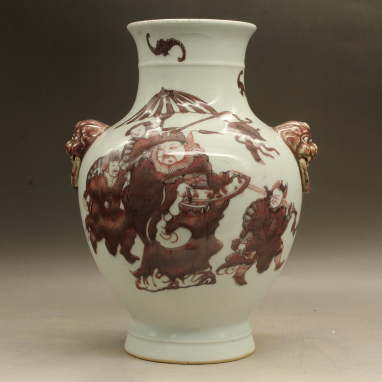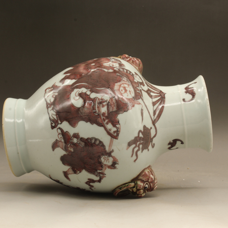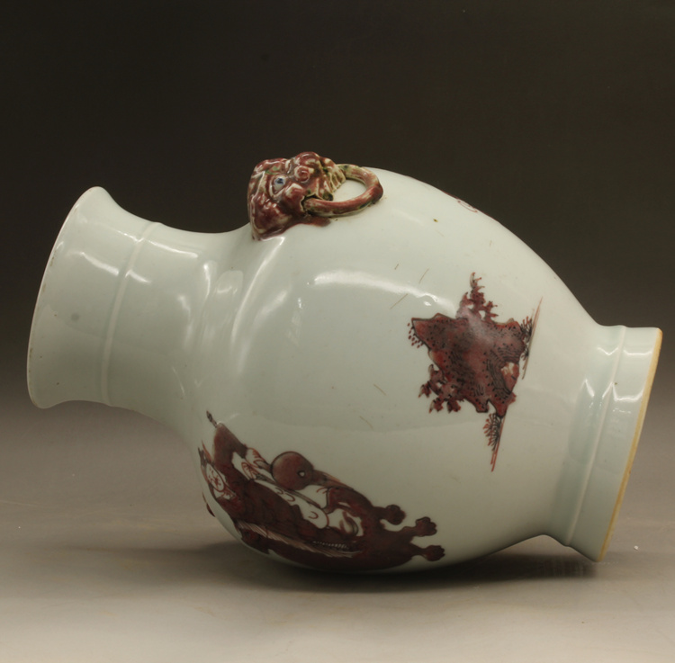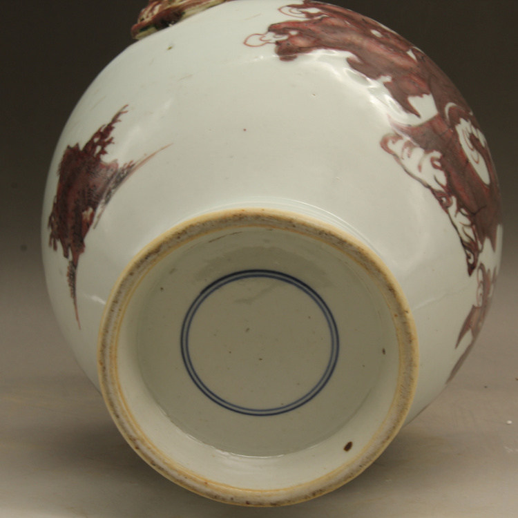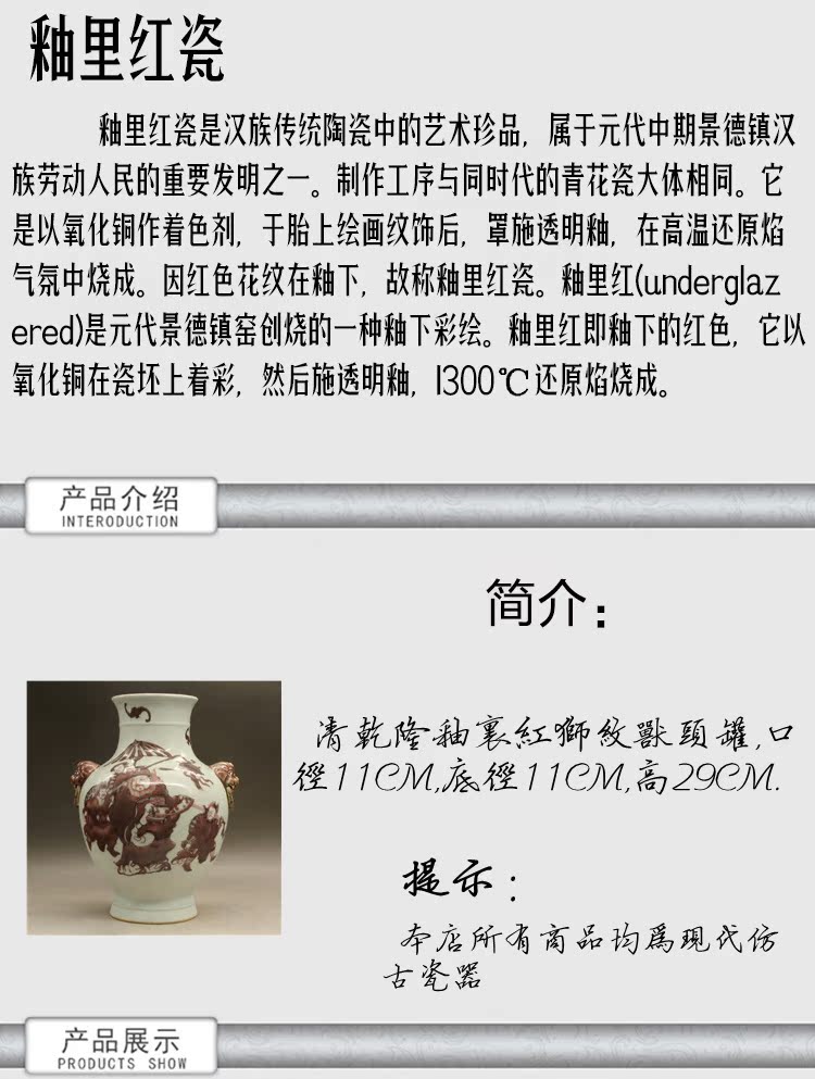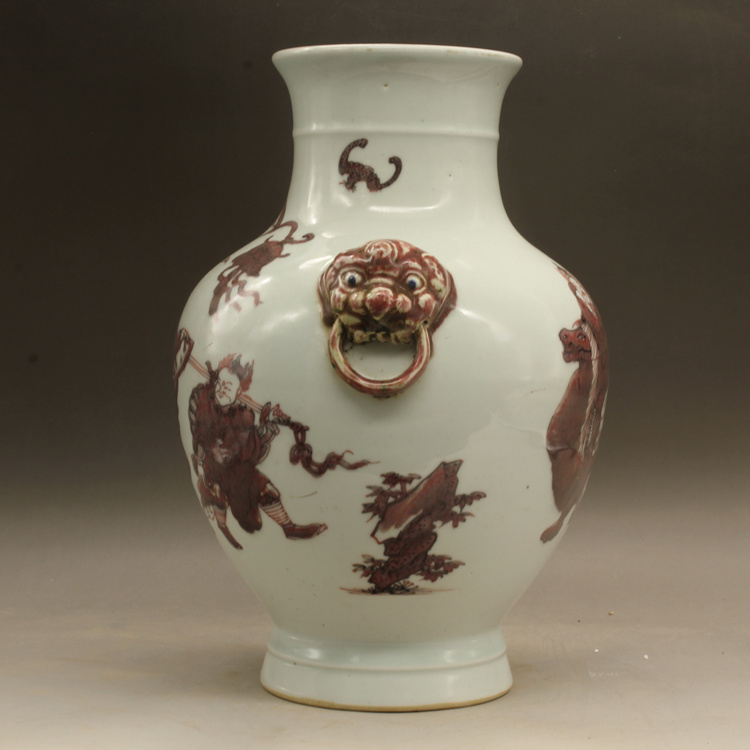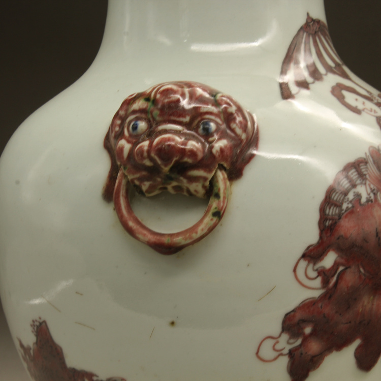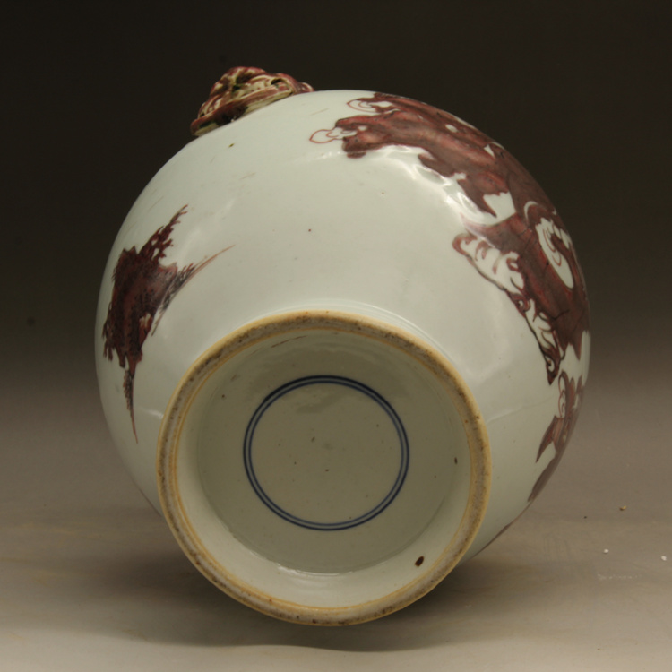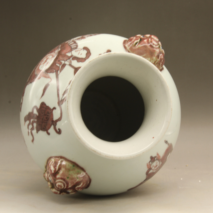 清乾隆釉里紅獅紋獸頭罐古玩瓷器古董擺件仿古瓷器收藏1入