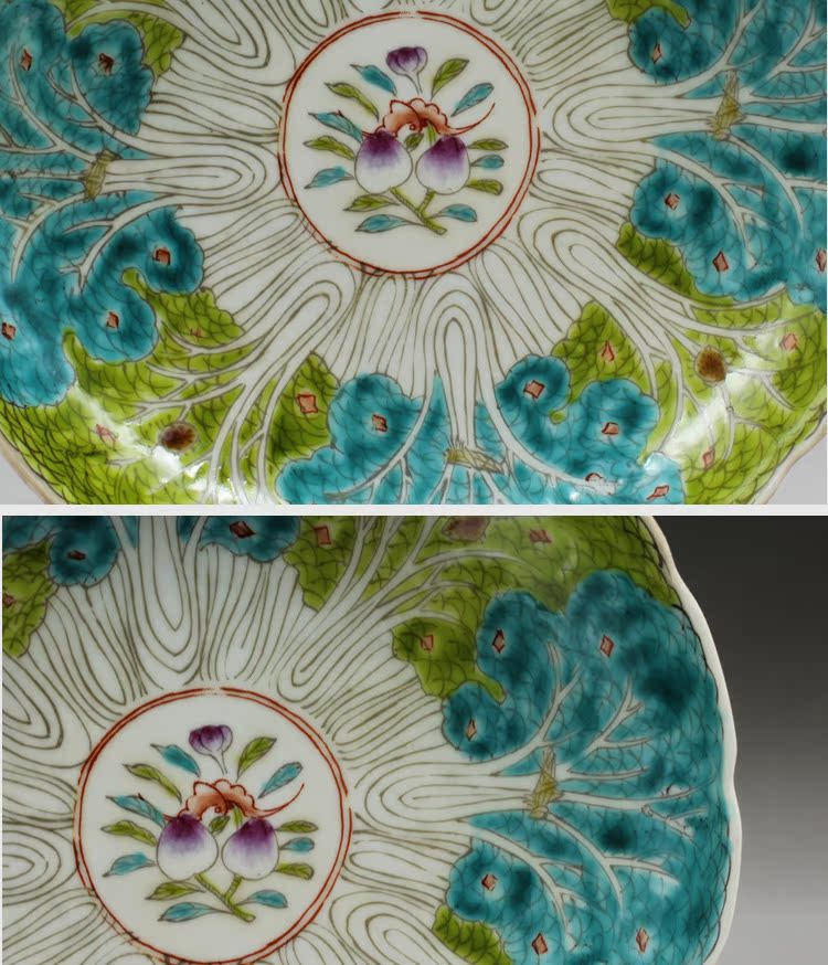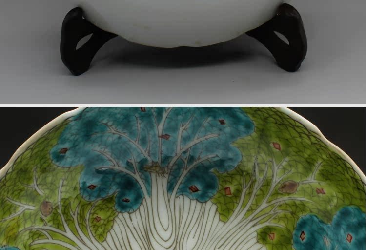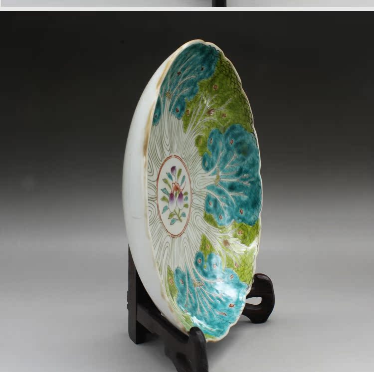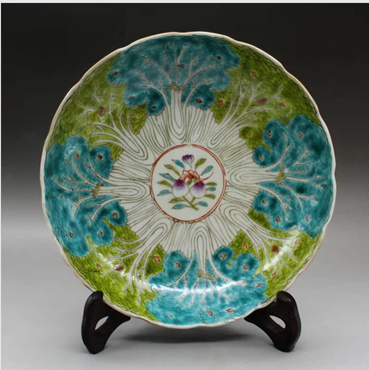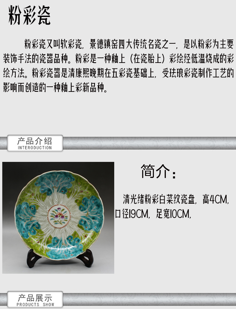 清光緒粉彩白菜紋瓷盤古玩瓷器老貨古董老陶瓷舊貨老物件擺件收藏1入