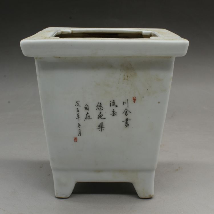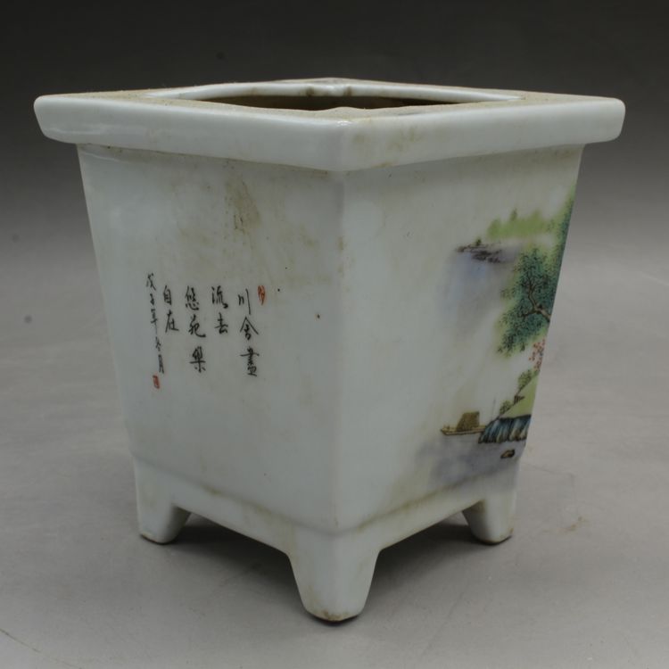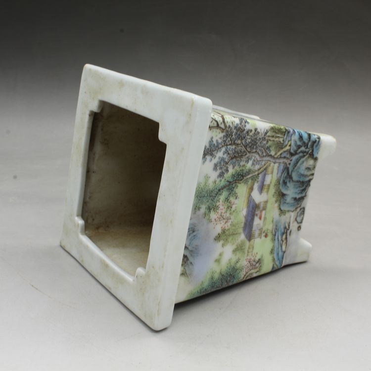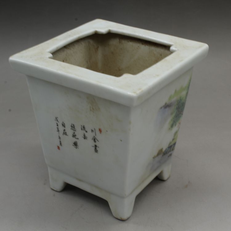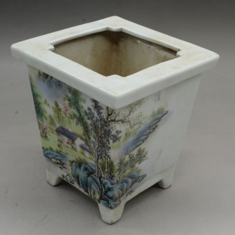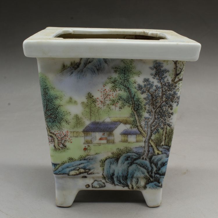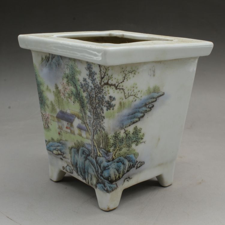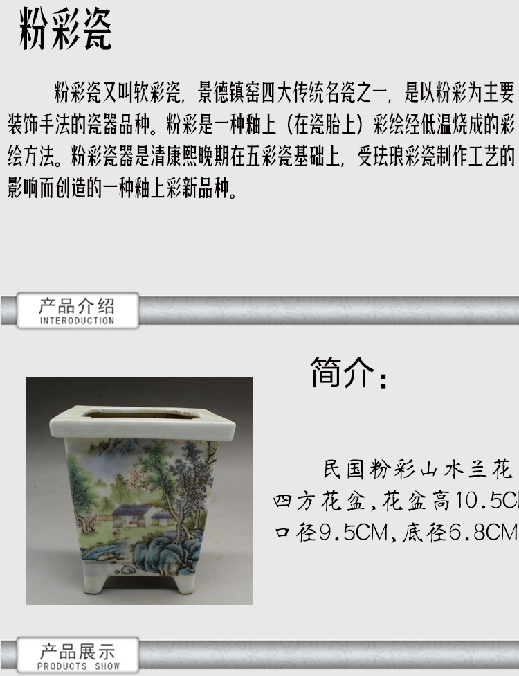 清光緒粉彩山水蘭花多肉菖蒲花盆古董古玩瓷器仿古擺件收藏1入