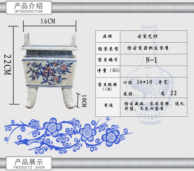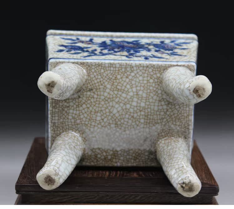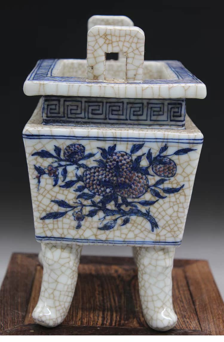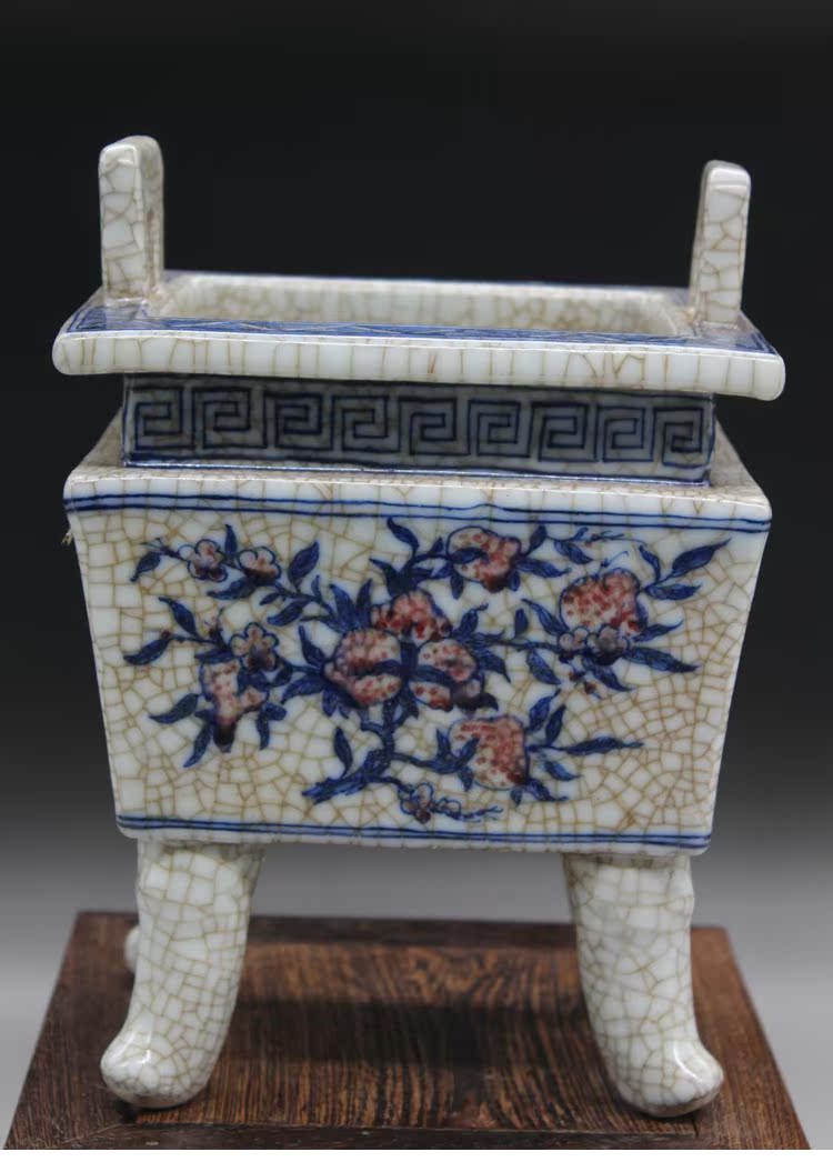 清官窯開片加彩四方香爐古董風水物古玩瓷器老貨古玩擺件仿古熱賣1入