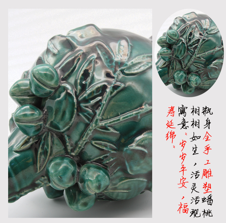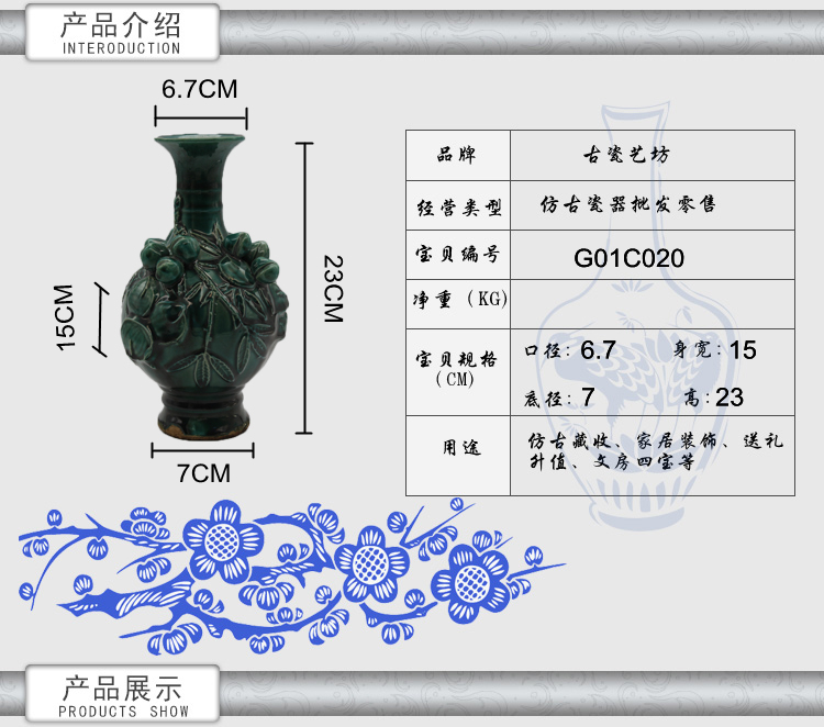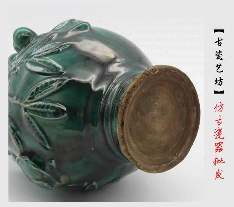 清光緒孔雀綠瓷花瓶古玩瓷器老貨古董陶瓷擺件收藏老物件廠貨做舊1入