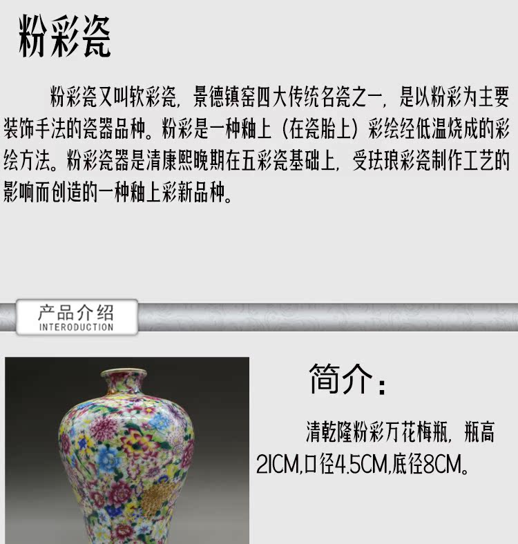 清乾隆粉彩萬花梅瓶古玩古董老陶瓷舊貨老貨老物件擺件民間收藏1入