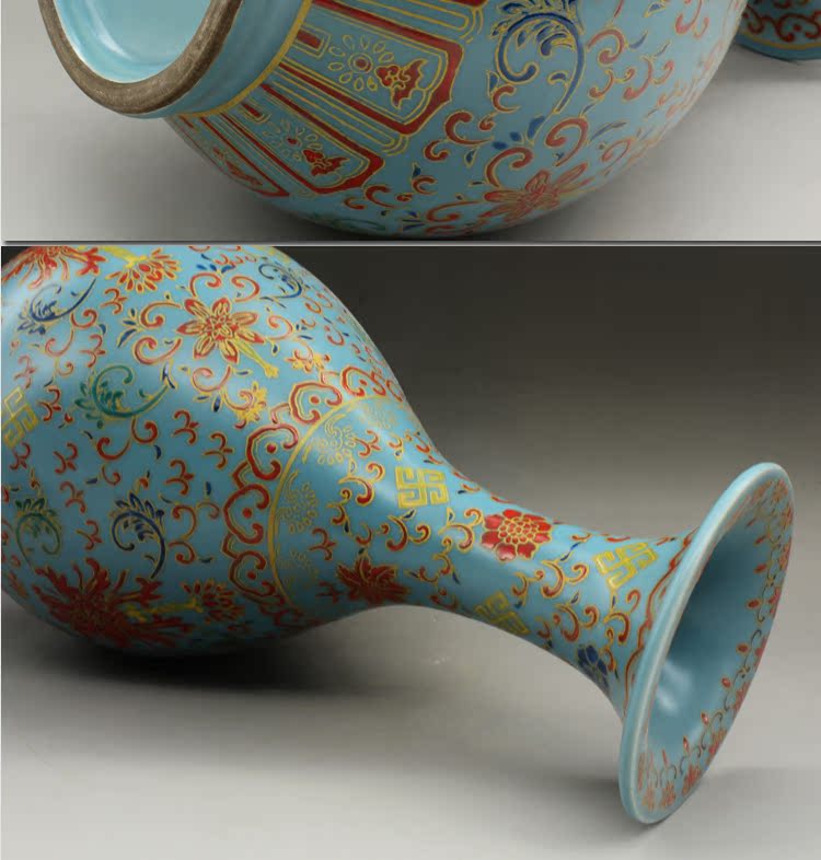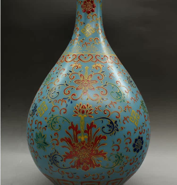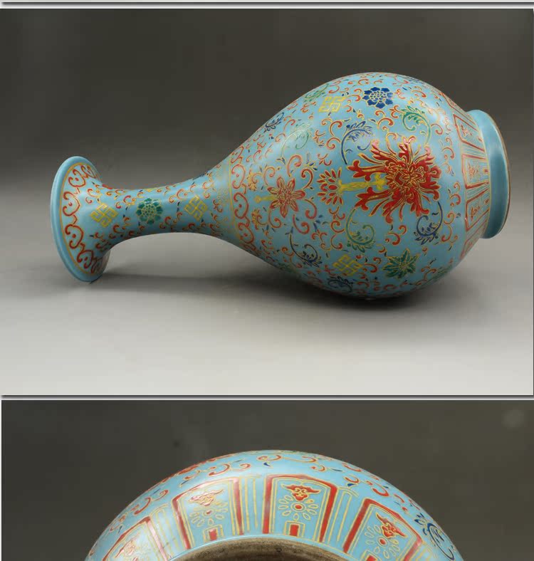 清雍正琺瑯彩花卉玉壺春瓶古玩瓷器老貨古董擺件老物件收藏1入