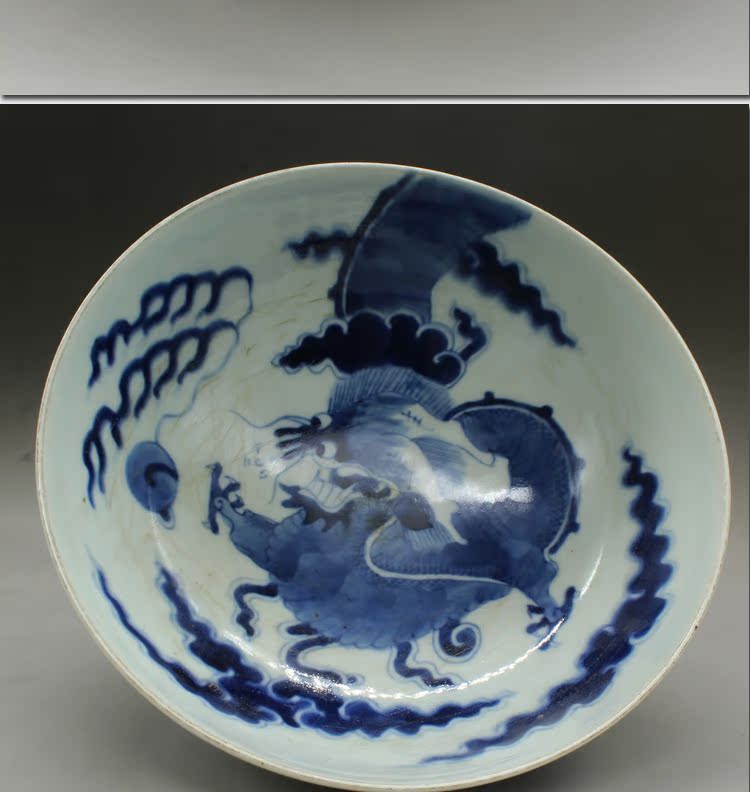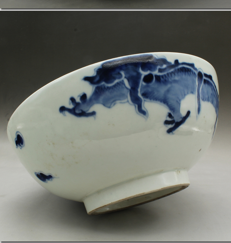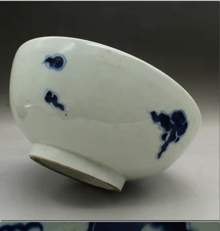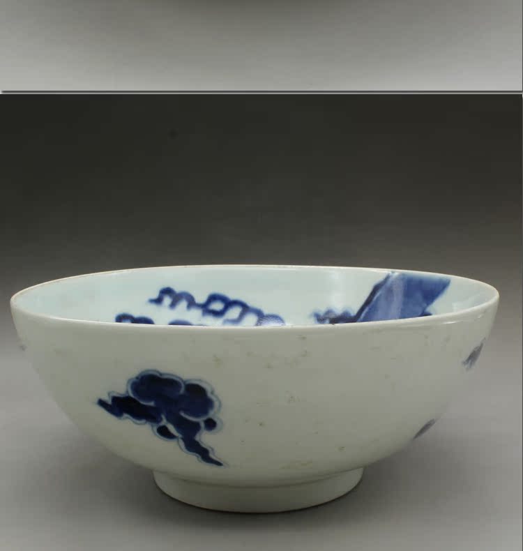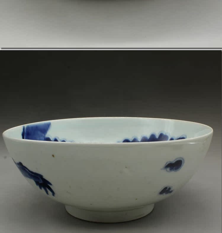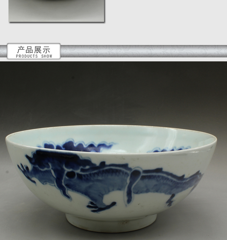 清乾隆青花龍紋大碗古玩瓷器老貨古董老陶瓷舊貨做舊仿古擺件收藏1入