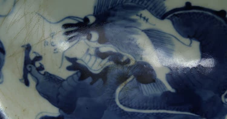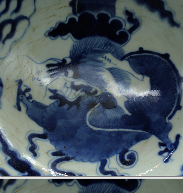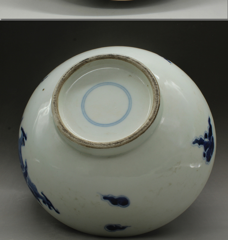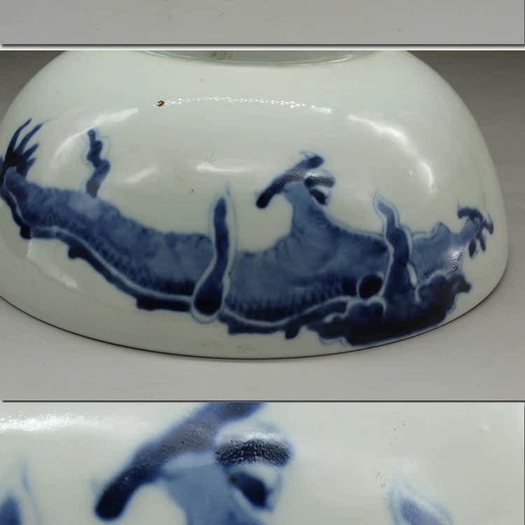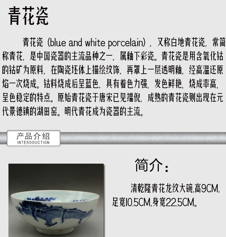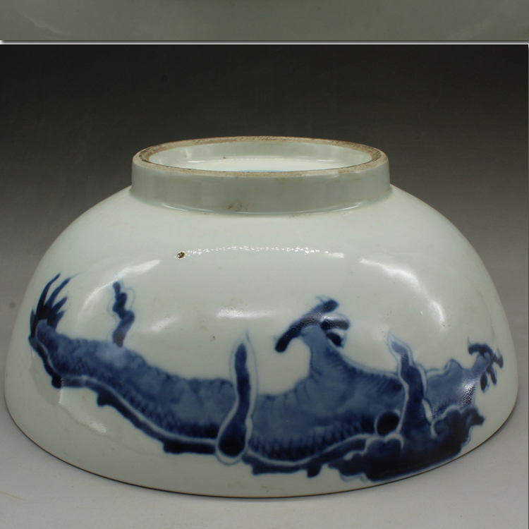 清乾隆青花龍紋大碗古玩瓷器老貨古董老陶瓷舊貨做舊仿古擺件收藏1入