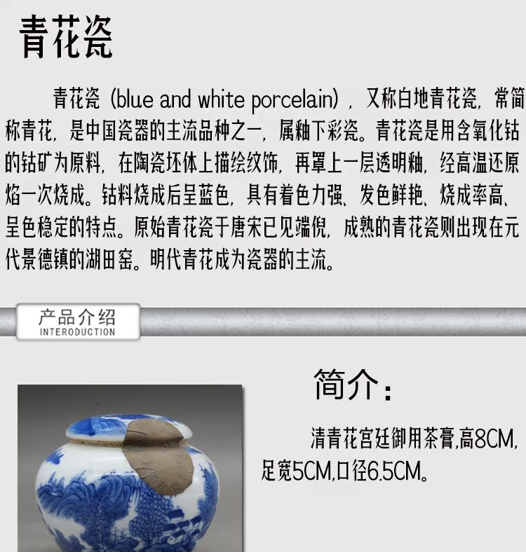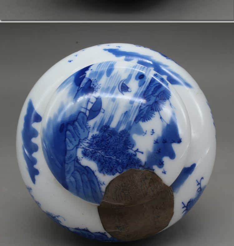 仿清光緒青花山水茶葉罐茶膏古董老陶瓷古玩瓷器老物件擺件收藏1入