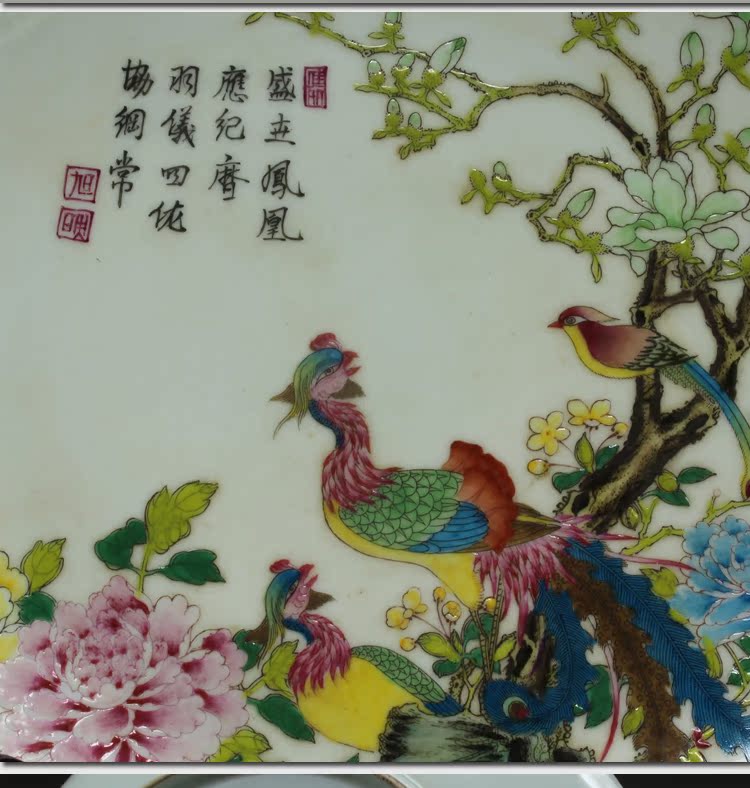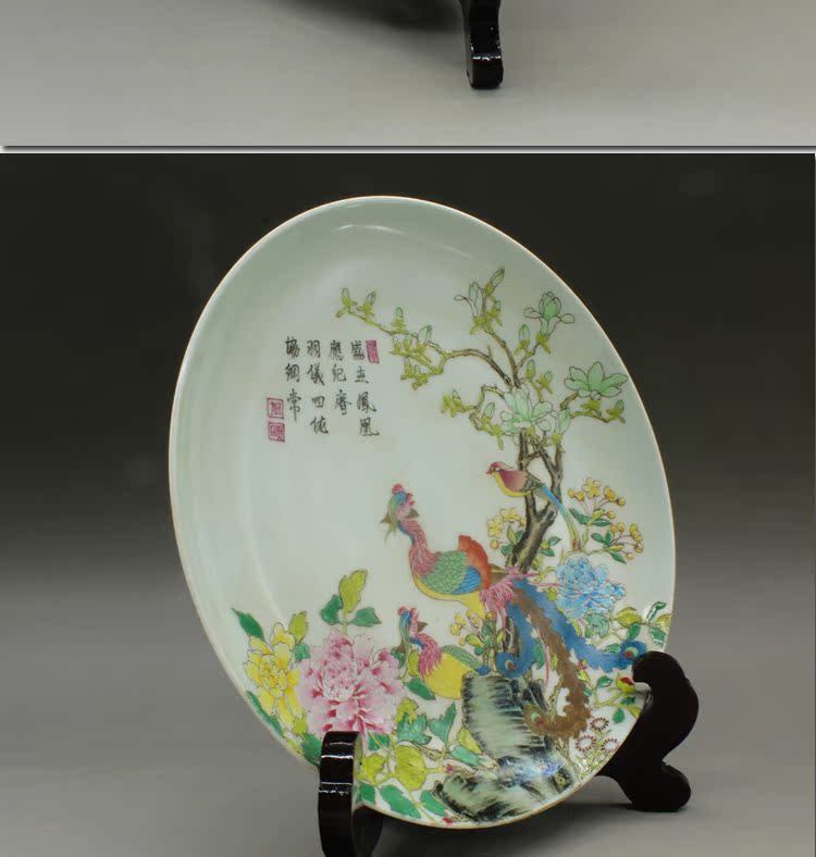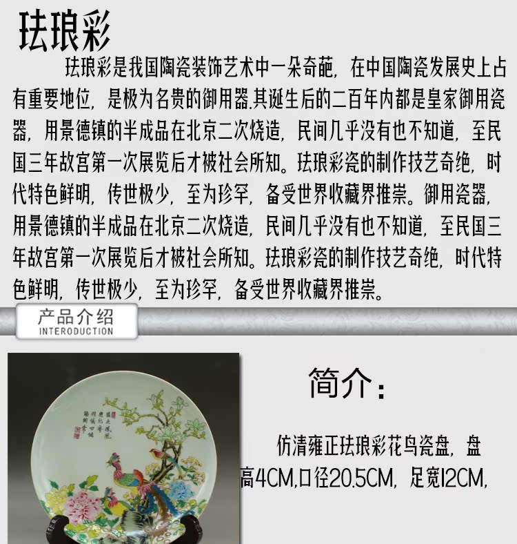 仿清雍正琺瑯彩花鳥瓷盤古玩瓷器古董老陶瓷老物件仿古擺件收藏1入