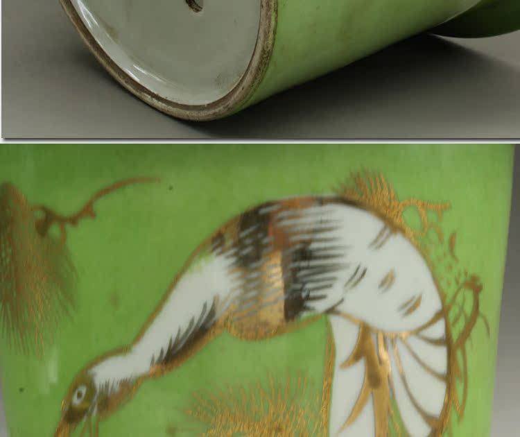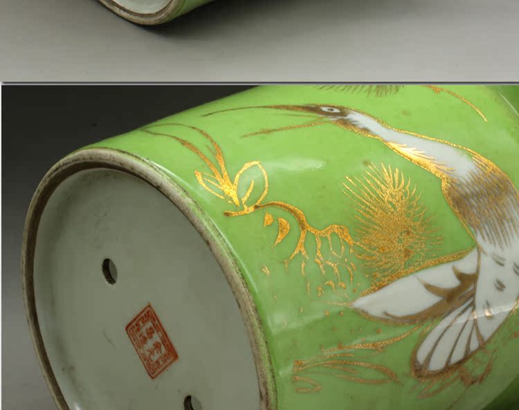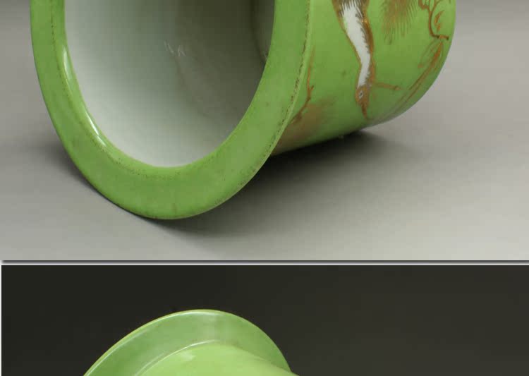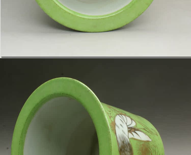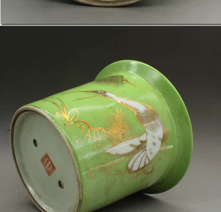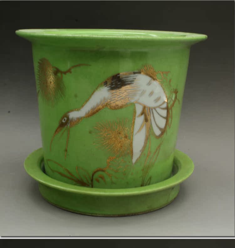 余元昌款綠釉描金菖蒲蘭花多肉花盆(一對)古董古玩仿古擺件收藏1入