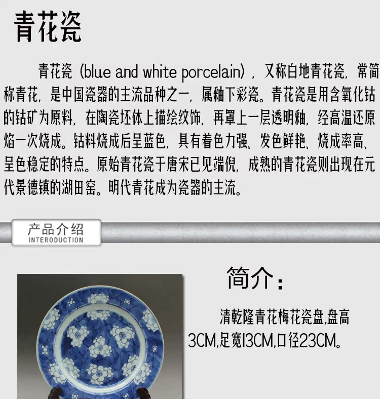 清乾隆手繪青花臘梅瓷盤擺件古玩古董仿古瓷器老陶瓷老物件收藏品1入