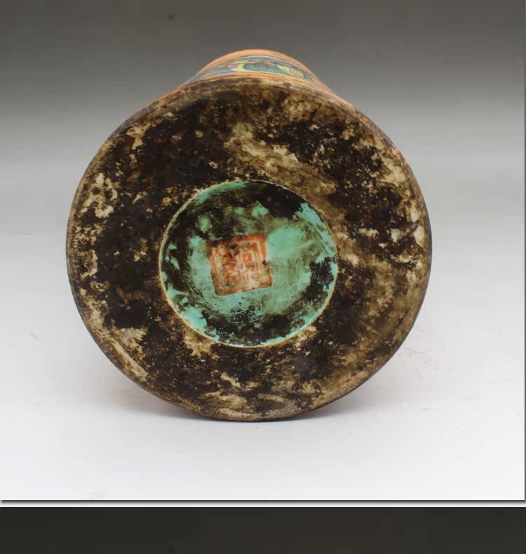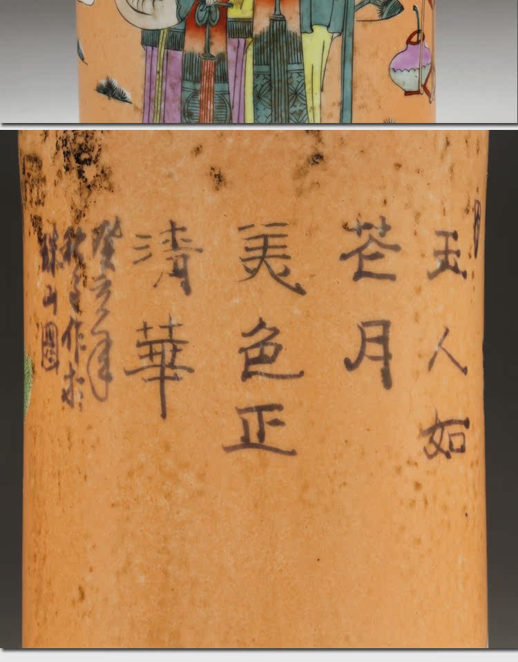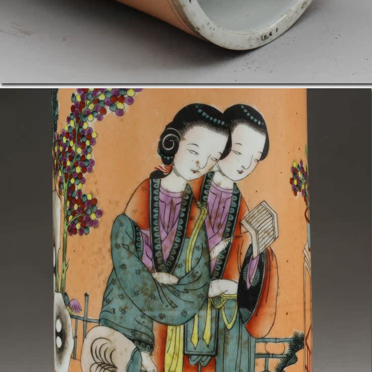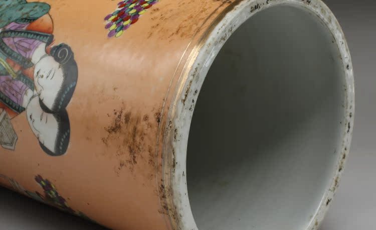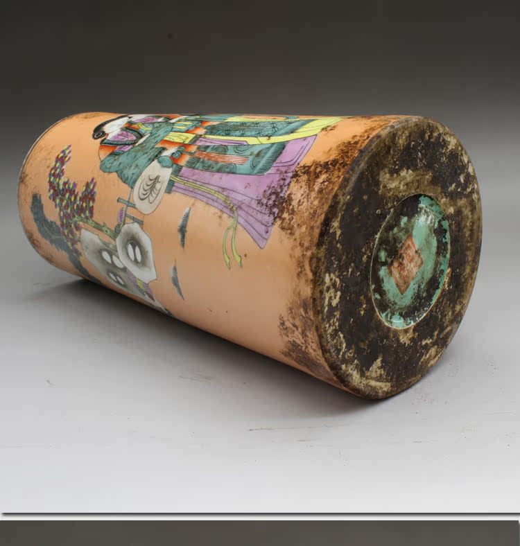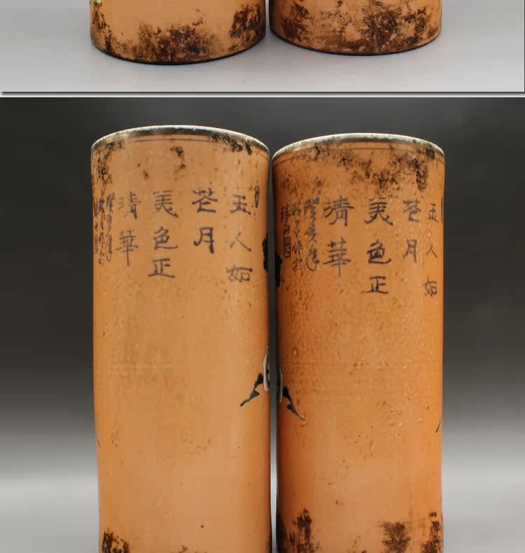 清同治礬紅人物帽筒(一對)古玩瓷器老貨古董老陶瓷仿古擺件收藏1入