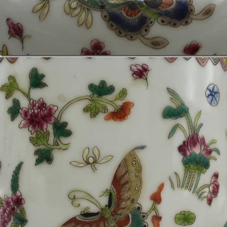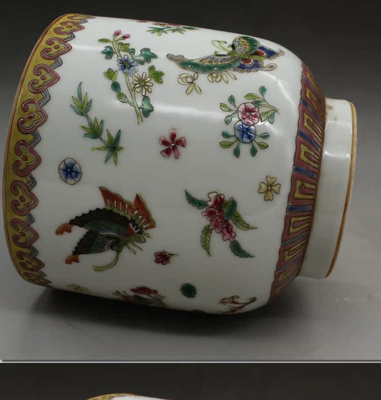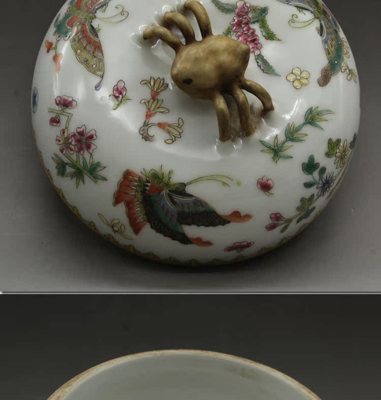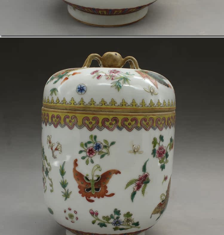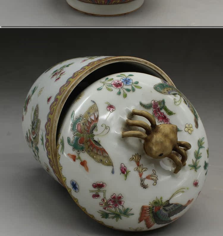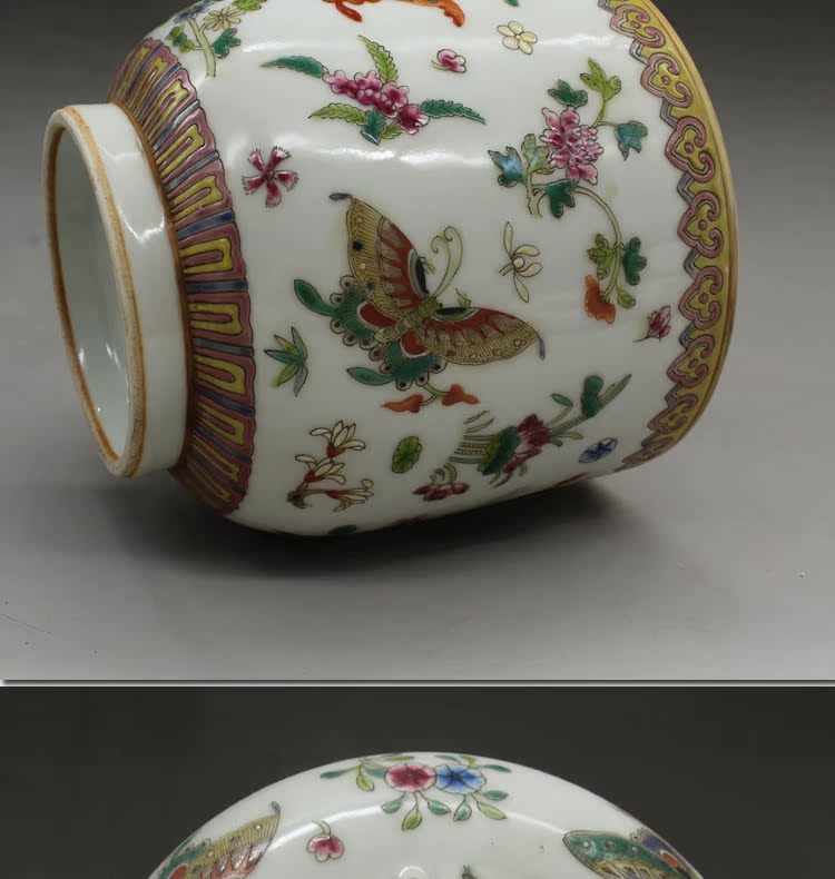 清乾隆手繪粉彩蝴蝶蓋罐古玩瓷器老貨古董老陶瓷舊貨擺件收藏品1入