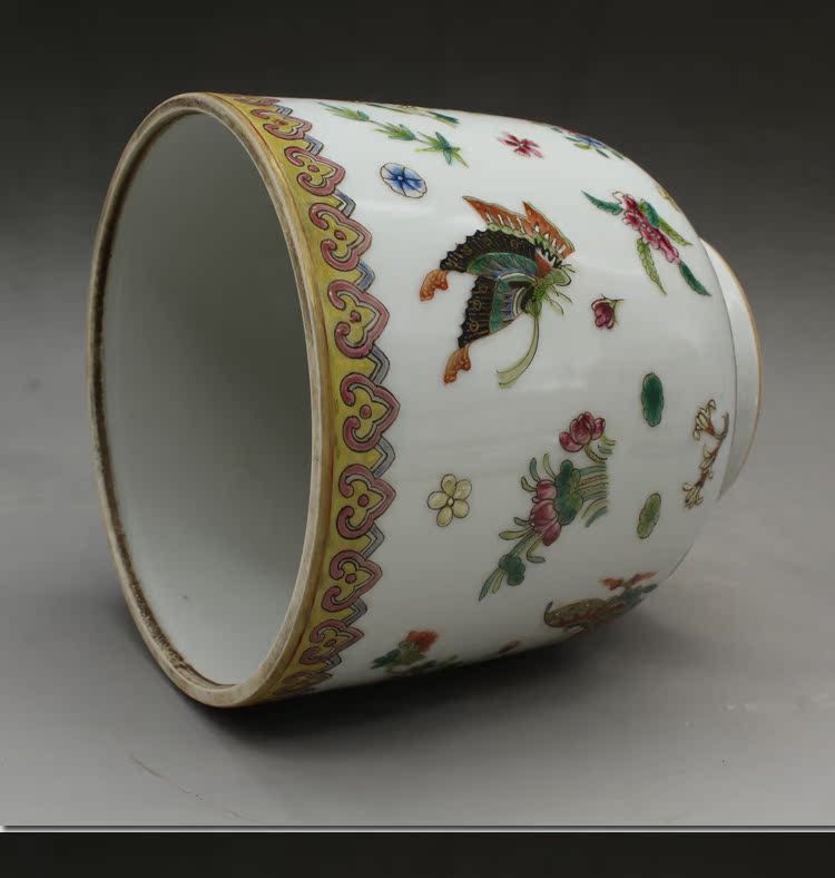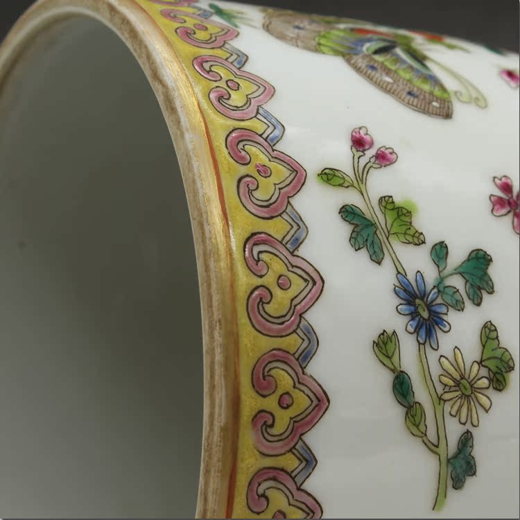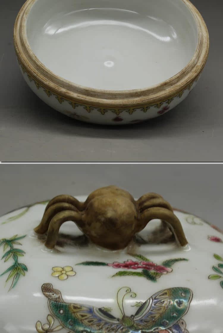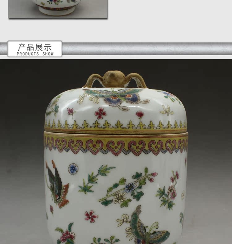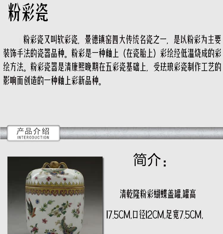 清乾隆手繪粉彩蝴蝶蓋罐古玩瓷器老貨古董老陶瓷舊貨擺件收藏品1入