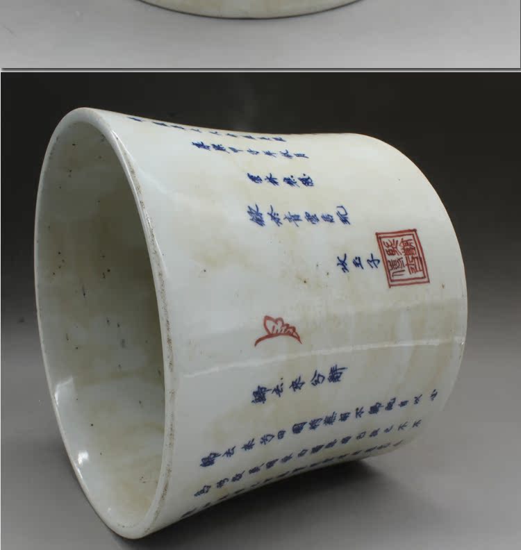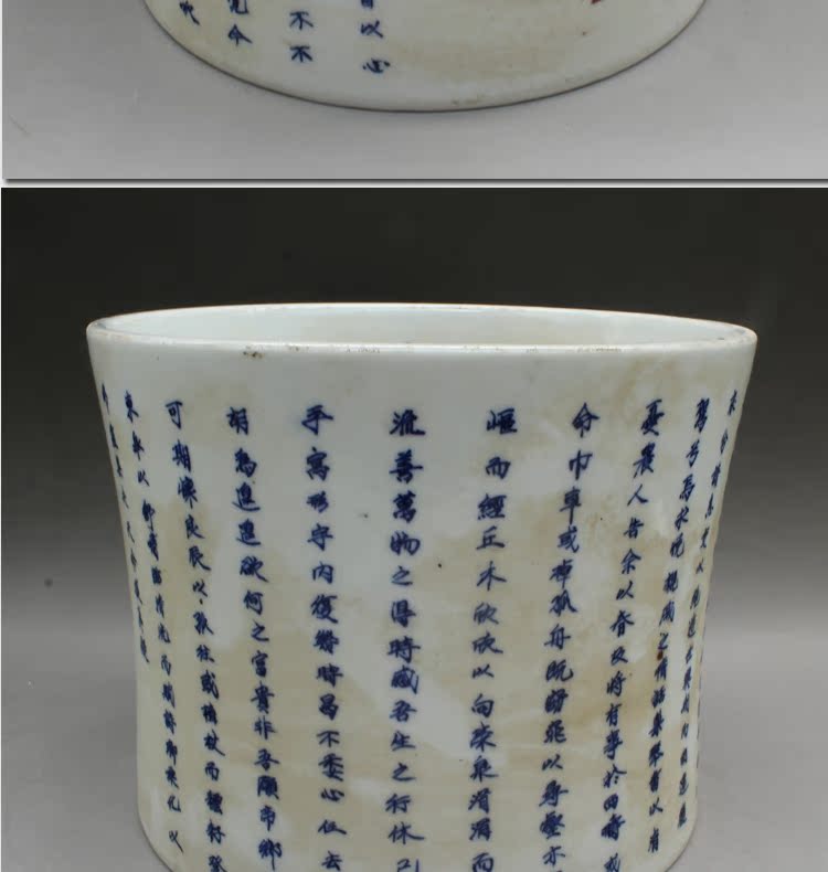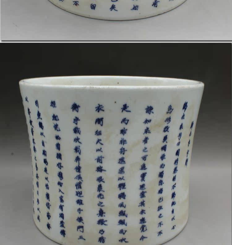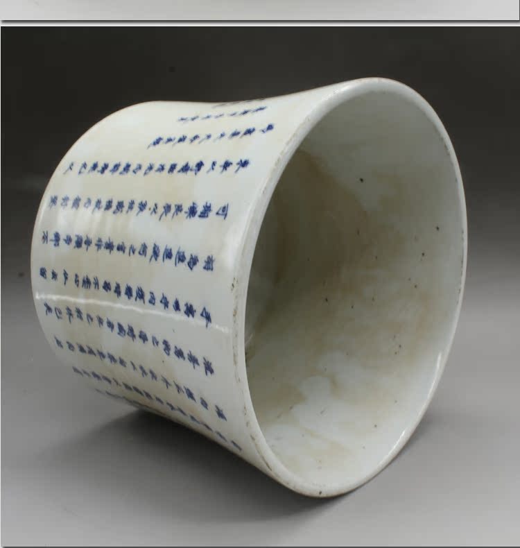 清康熙青花詩文大號筆筒古玩古董老陶瓷舊貨仿古做舊擺件收藏品1入