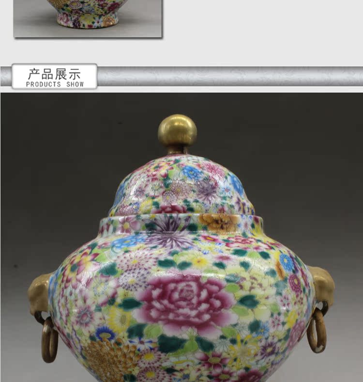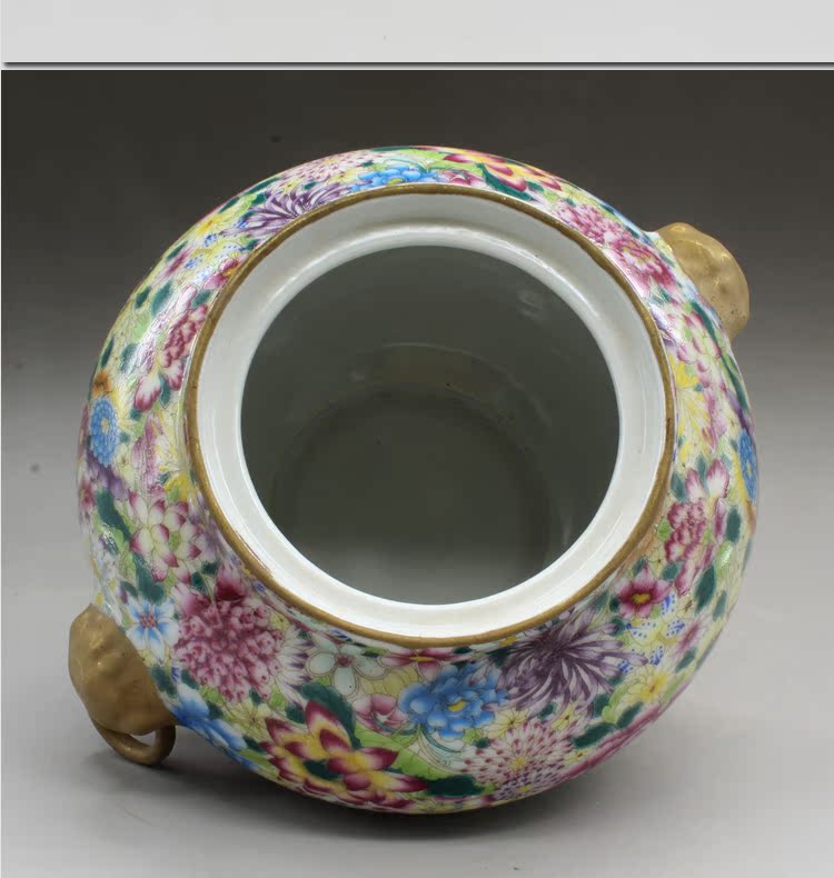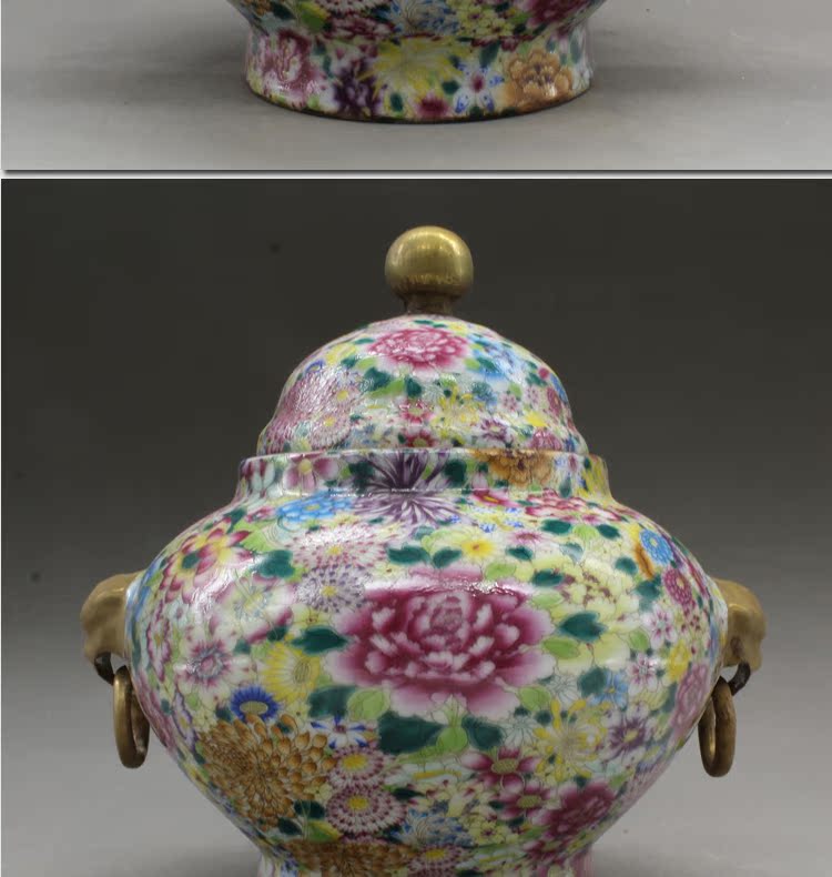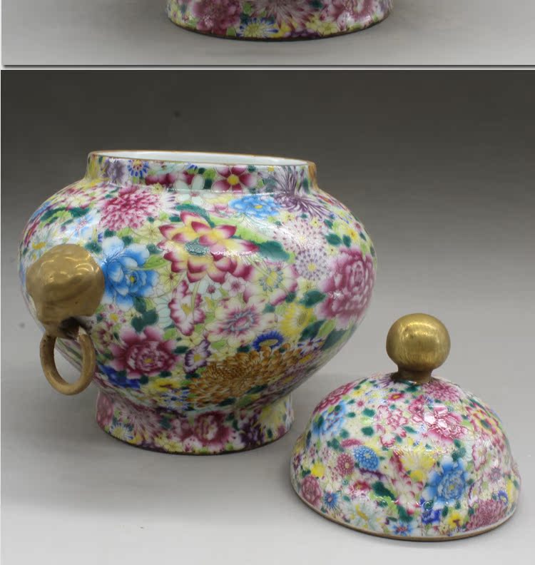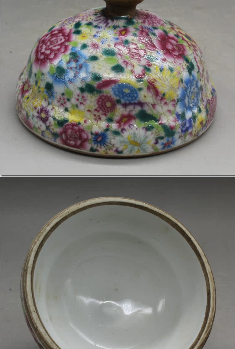 清乾隆粉彩萬花帶環蓋罐古玩古董老陶瓷舊貨老物件仿古擺件收藏1入