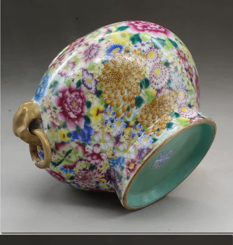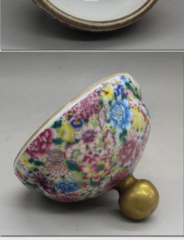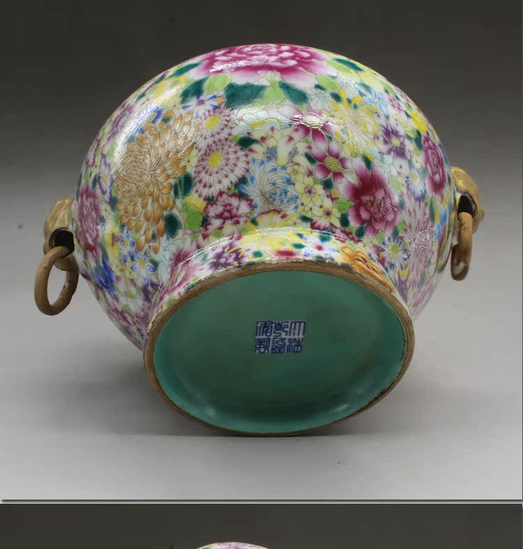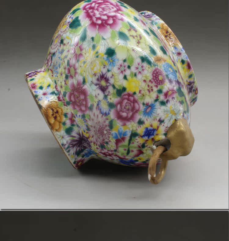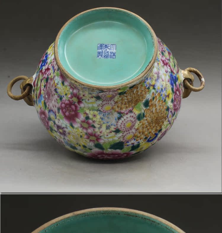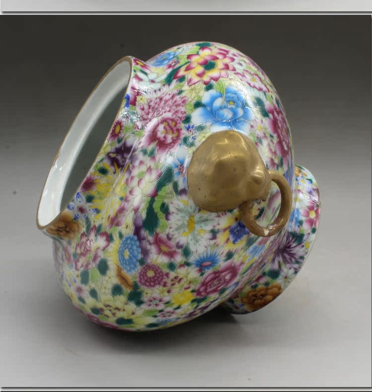 清乾隆粉彩萬花帶環蓋罐古玩古董老陶瓷舊貨老物件仿古擺件收藏1入
